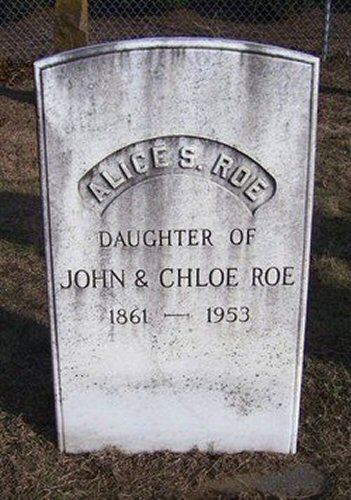 Notes for ALICE S ROE: Daughter of John and Chloe Ann (Stiles) Roe. Born: 1861 in Unknown. Died: 1953 in Unknown. Buried: Town Street Cemetery, East Windsor, Hartford County, Connecticut.