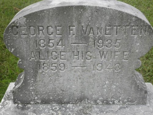Notes for ALICE S TUCKER VAN ETTEN: Daughter of ? and ?. Born: 1859 in Unknown. Died: 1943 in Unknown. Buried: Smith Valley Cemetery, Willseyville, Tioga County, New York. Married: George Florentine Van Etten Unknown in Unknown.