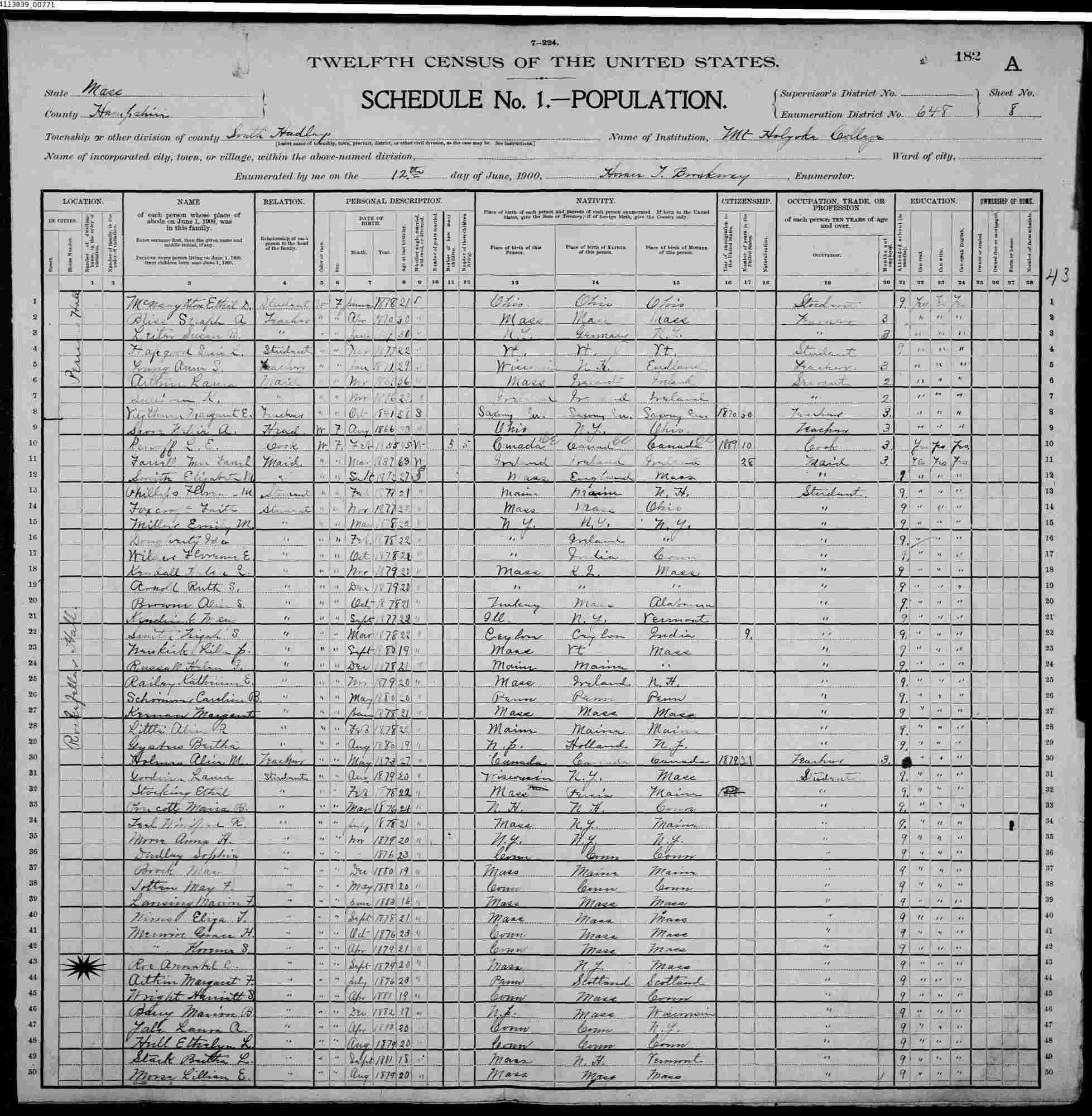 1900 - Mt. Holyoke College, Northampton, Hampshire County, Massachusetts.