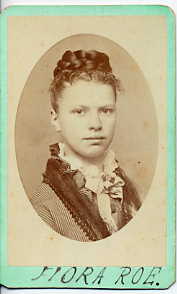 Notes for FLORA E ROE: Daughter of William and ? (Moss) Roe. Born: 1858 in Unknown. Died: 1946 in Unknown. Residence: 1874 - Wolcott, Wayne County, New York.