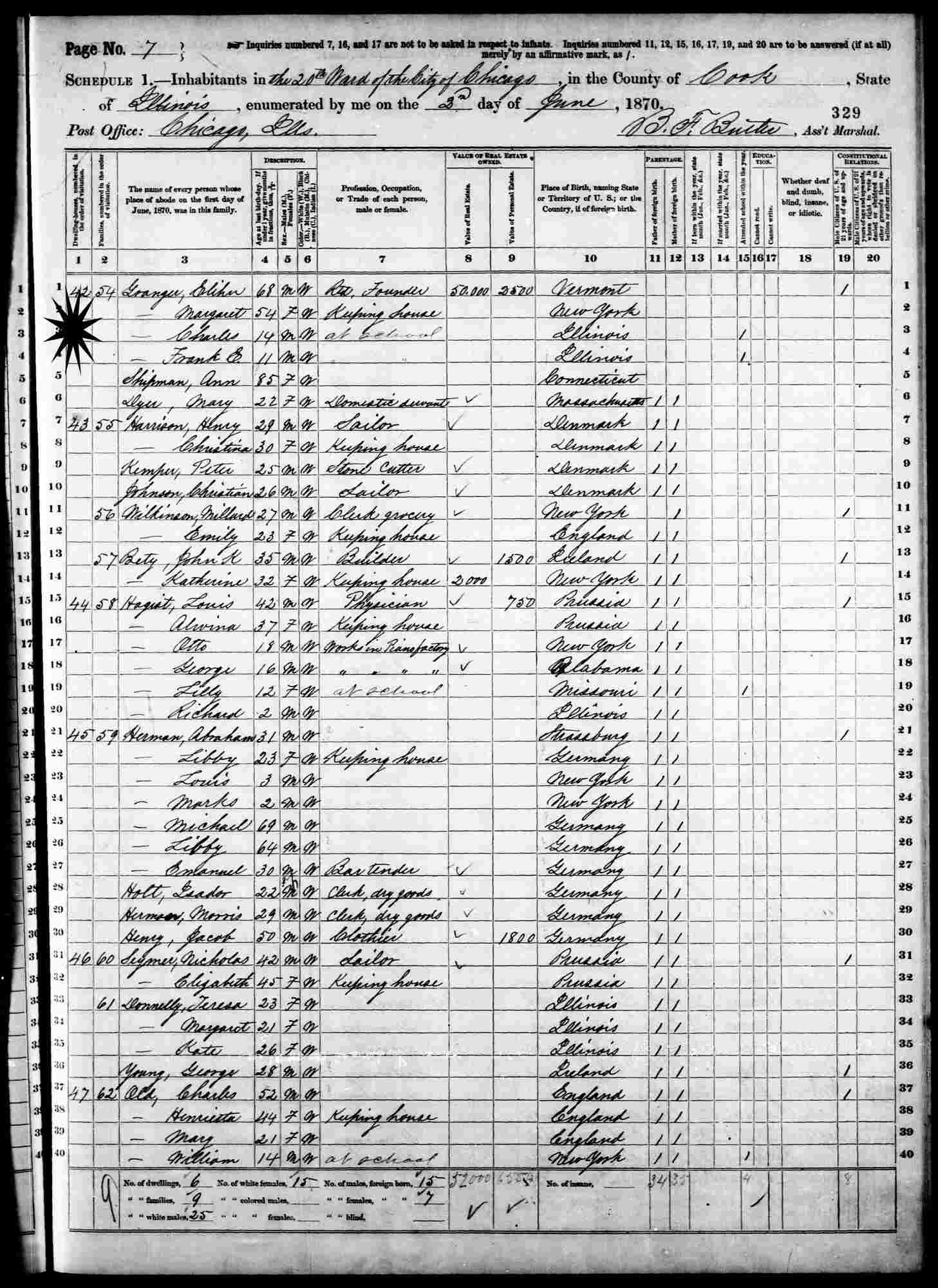 1870 - Ward 20, Chicago, Cook County, Illinois.