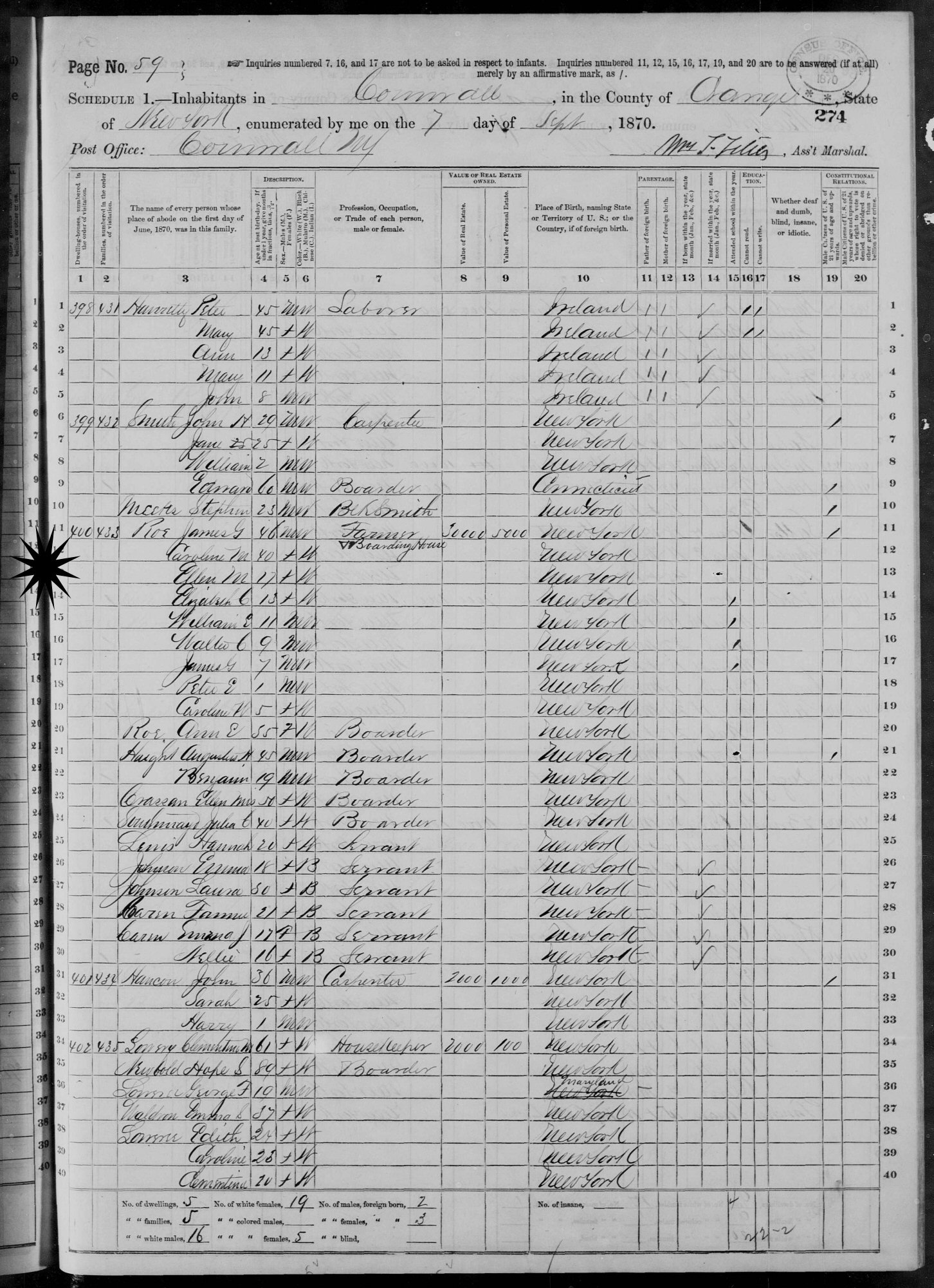 Born: May 25, 1863 in Cornwall, Orange County, New York.