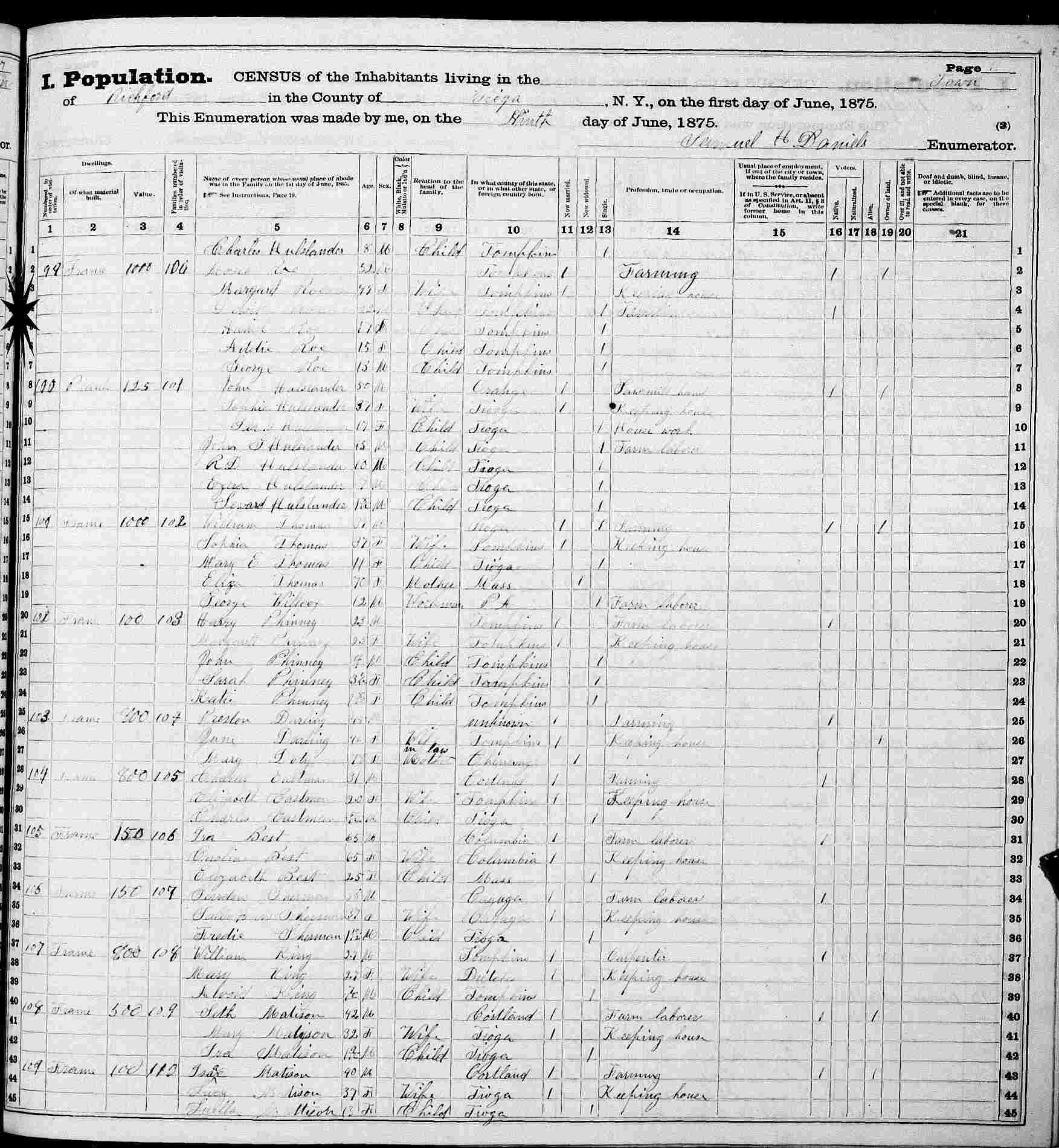 June 9, 1875 - Richford, Tioga County, New York.