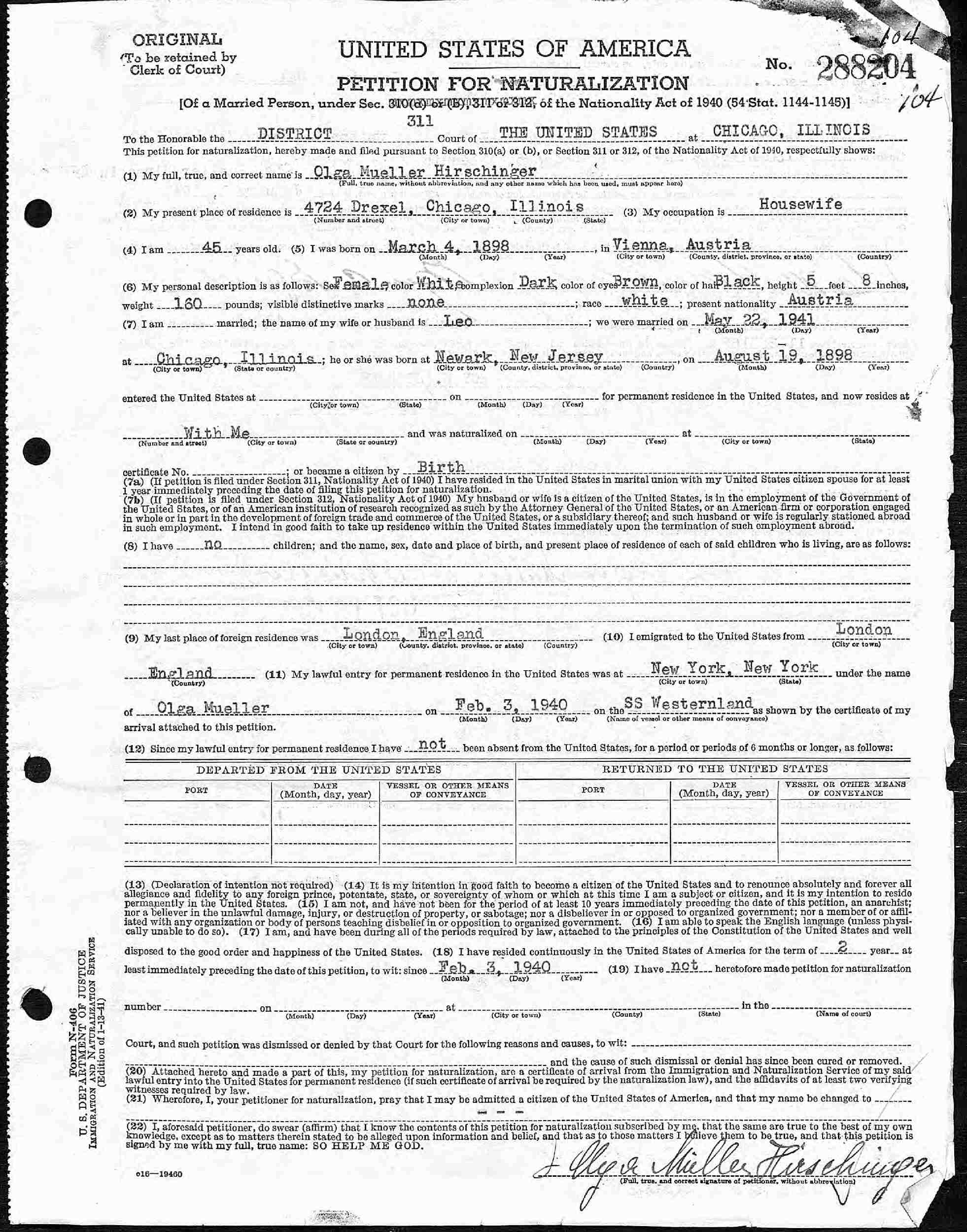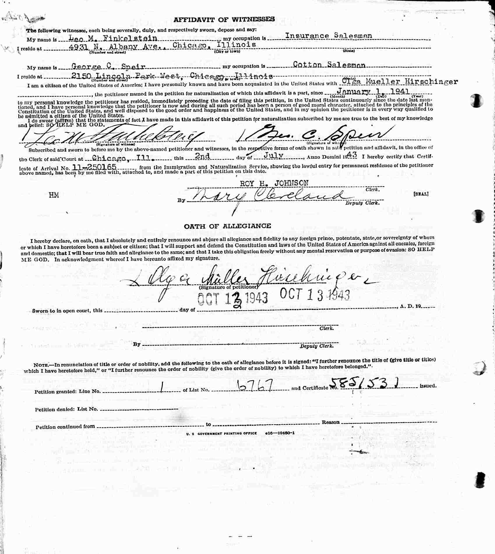 Oath of Allegiance: October 13, 1943 in Chicago, Cook County, Illinois.