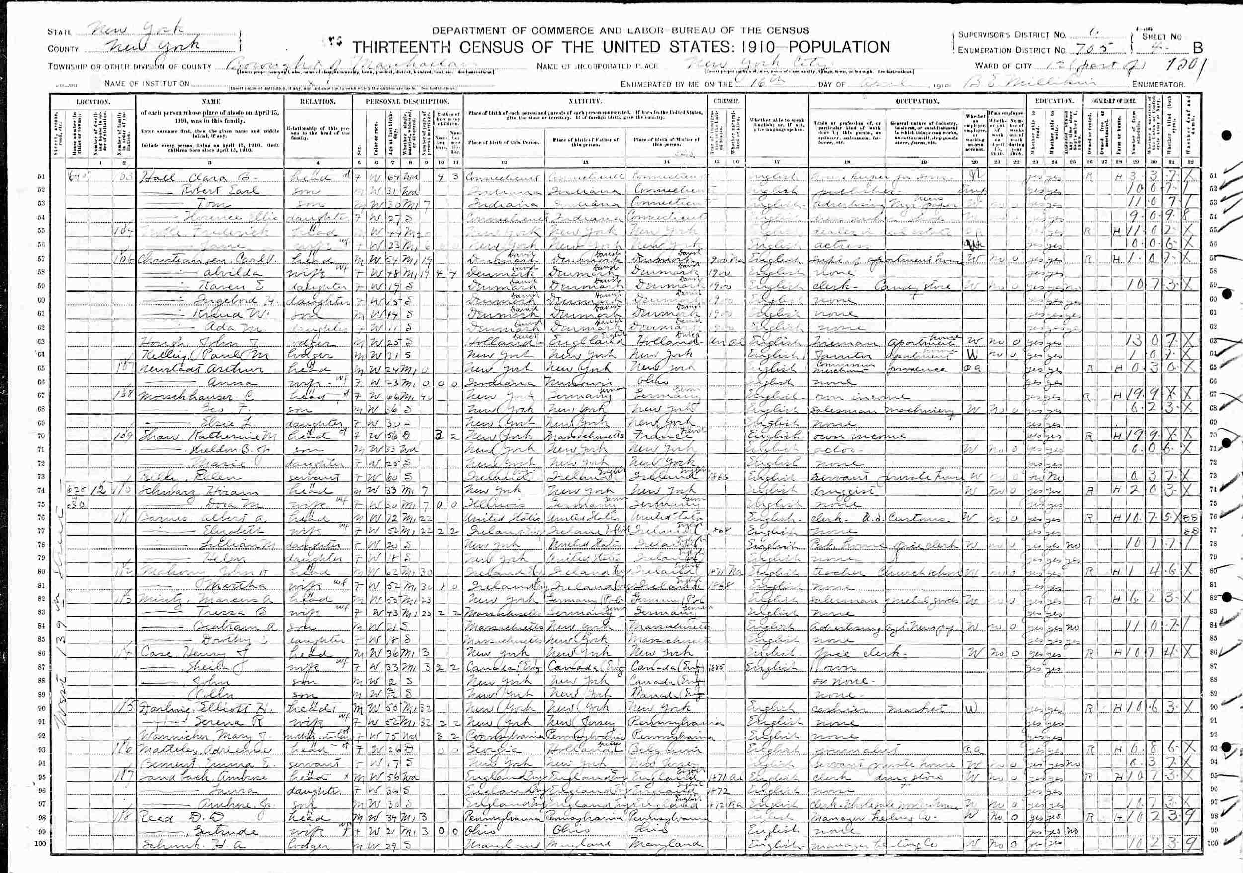 June 1, 1905 - New York State - 104 E. 124th Street, Assembly District 34, Election District 9, Block B, Manhattan, New York.