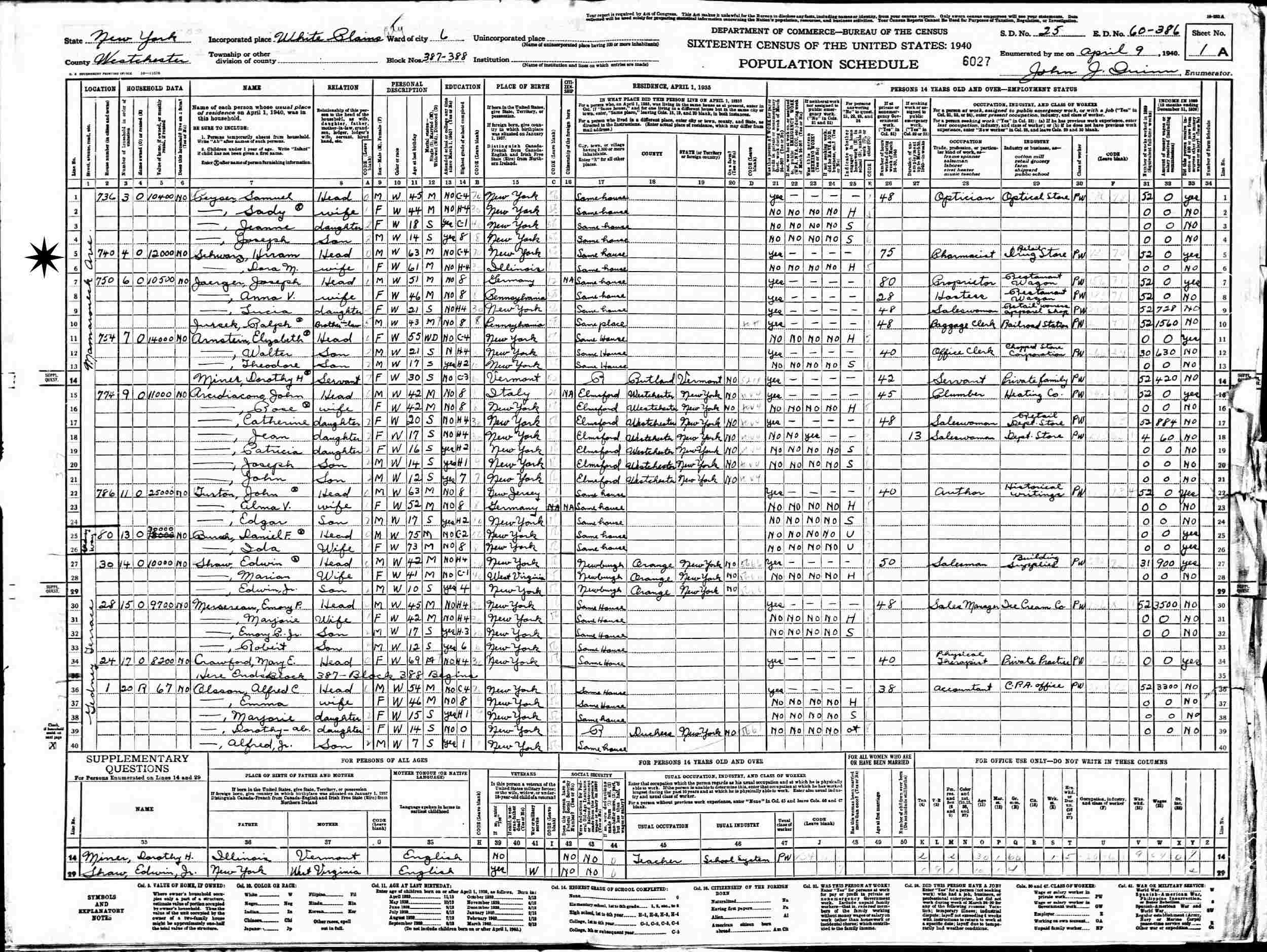 April 9, 1940 - 740 Mamaroneck Avenue, Ward 6, Block 387-388, Supervisor's District 25, Enumeration District 60-386, White Plains, Westchester County, New York.