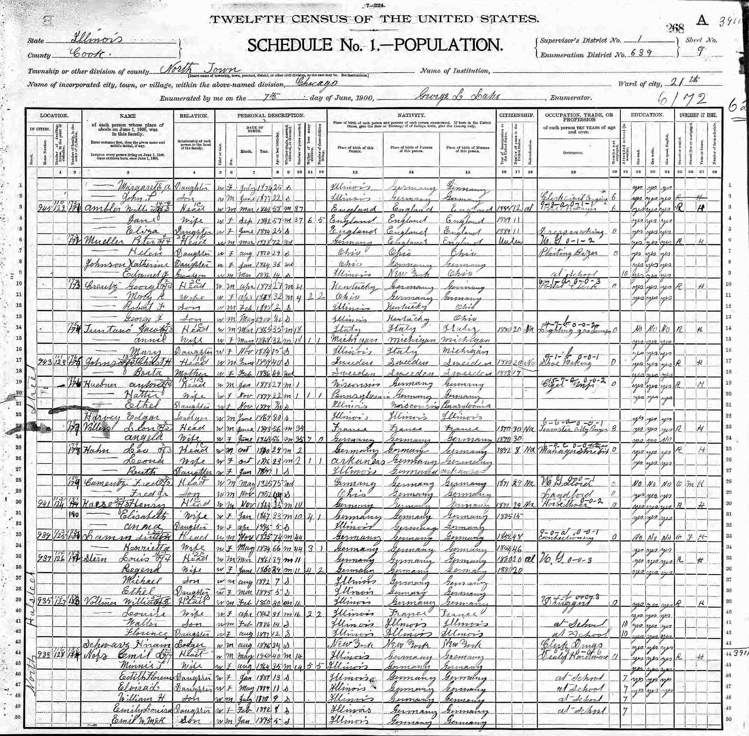 June 7, 1900 - 935 N. Halsted Street, Ward 21, Supervisor's District 1, Enumeration District 639, North Town, Chicago, Cook County, Illinois (Lodger).