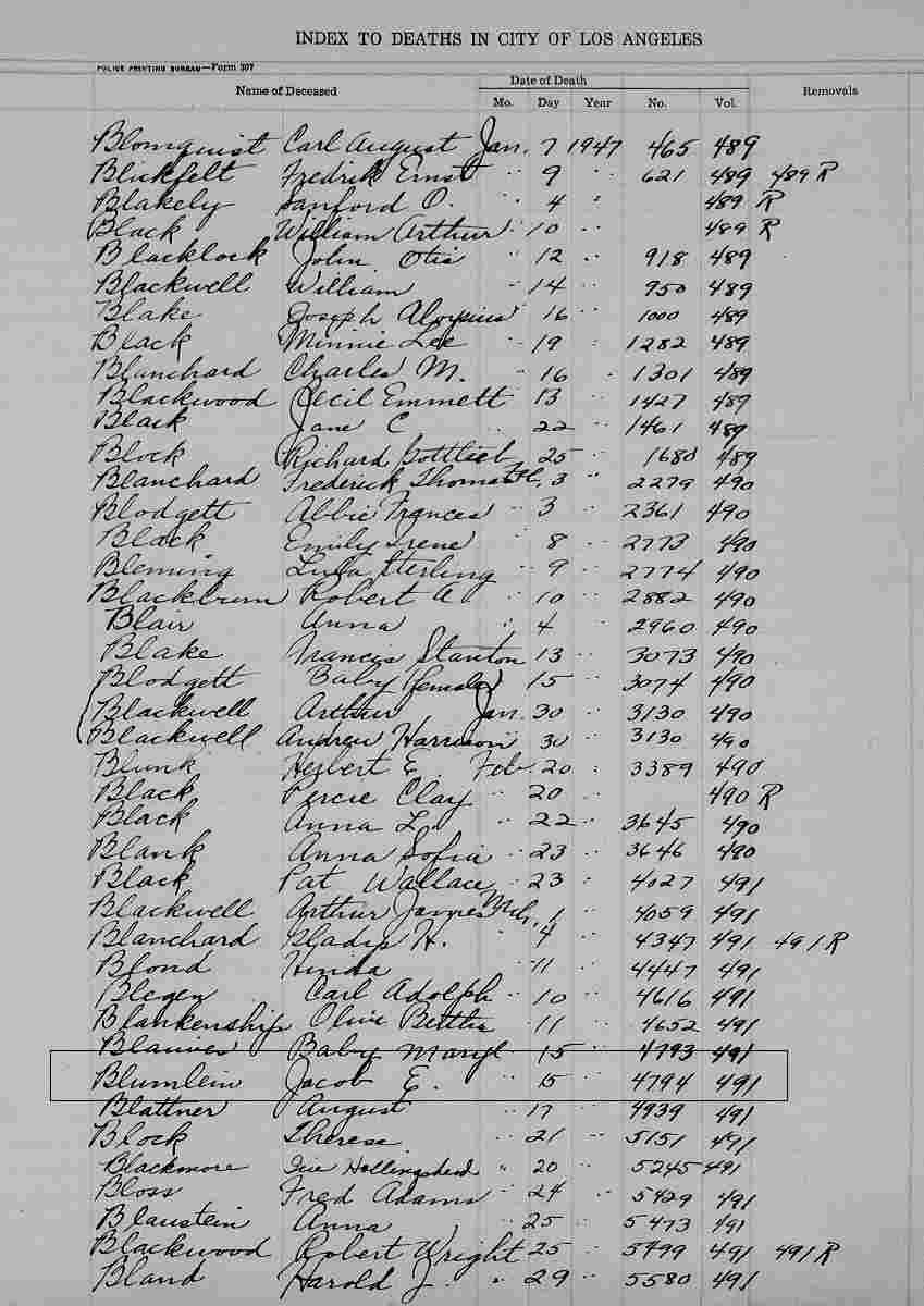 Notes for JACOB "JAKE" E BLUMLEIN: