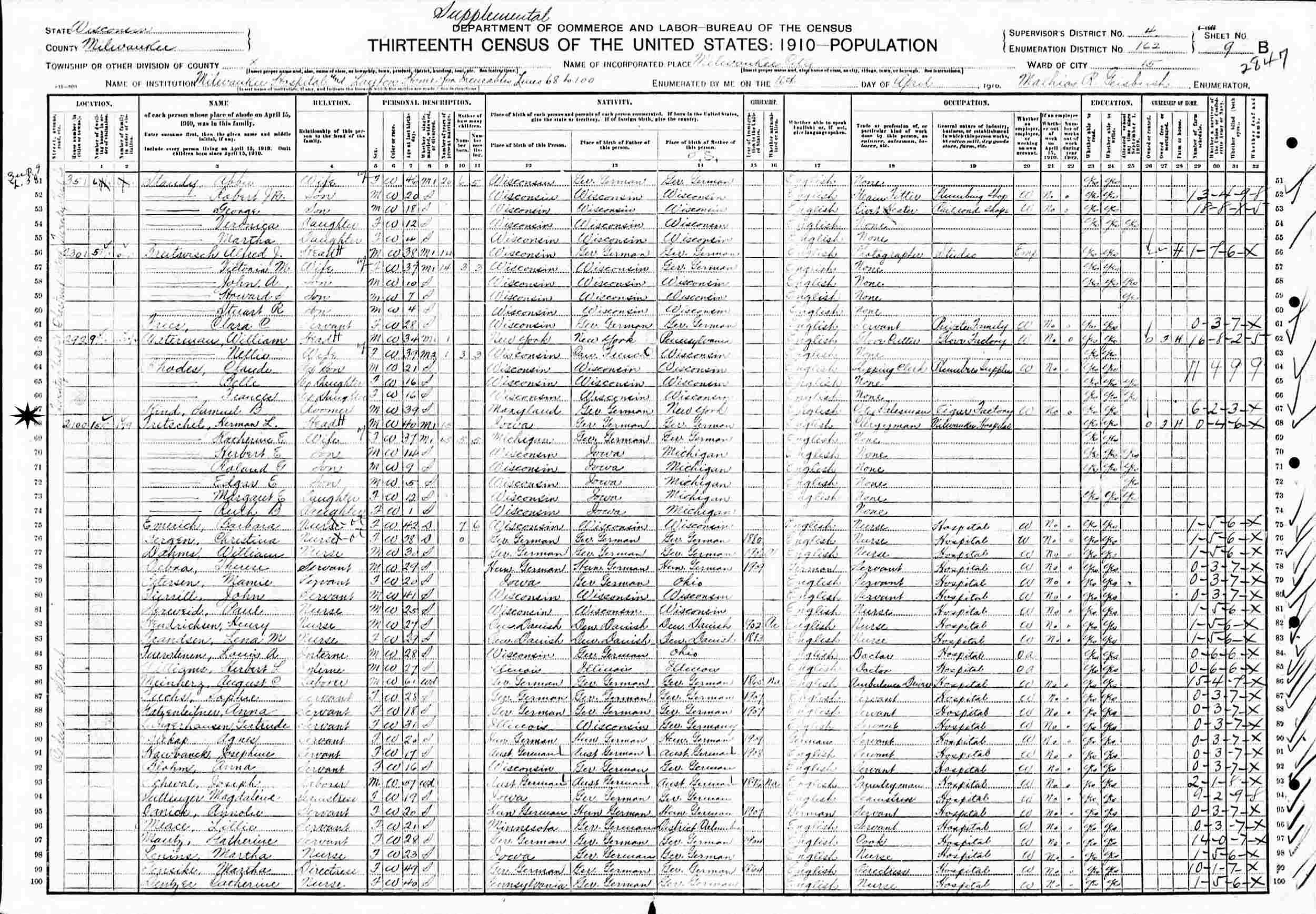 April 16, 1910 - 292 ???, Ward 15, Supervisor's District 4, Enumeration District 162, Milwaukee, Milwaukee County, Wisconsin (Roomer).