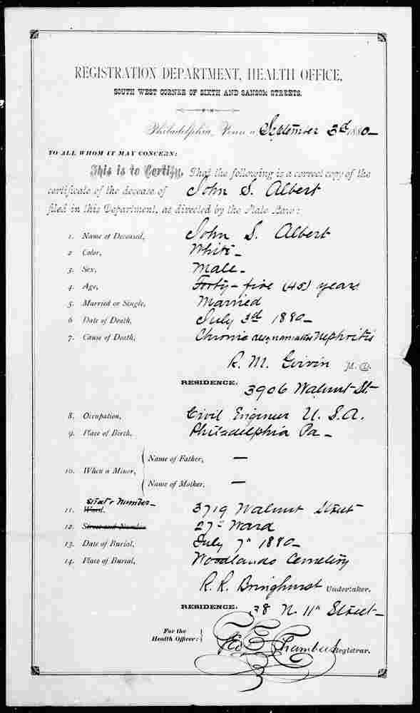 Died: July 3, 1880 in Philadelphia, Philadelphia County, Pennsylvania.