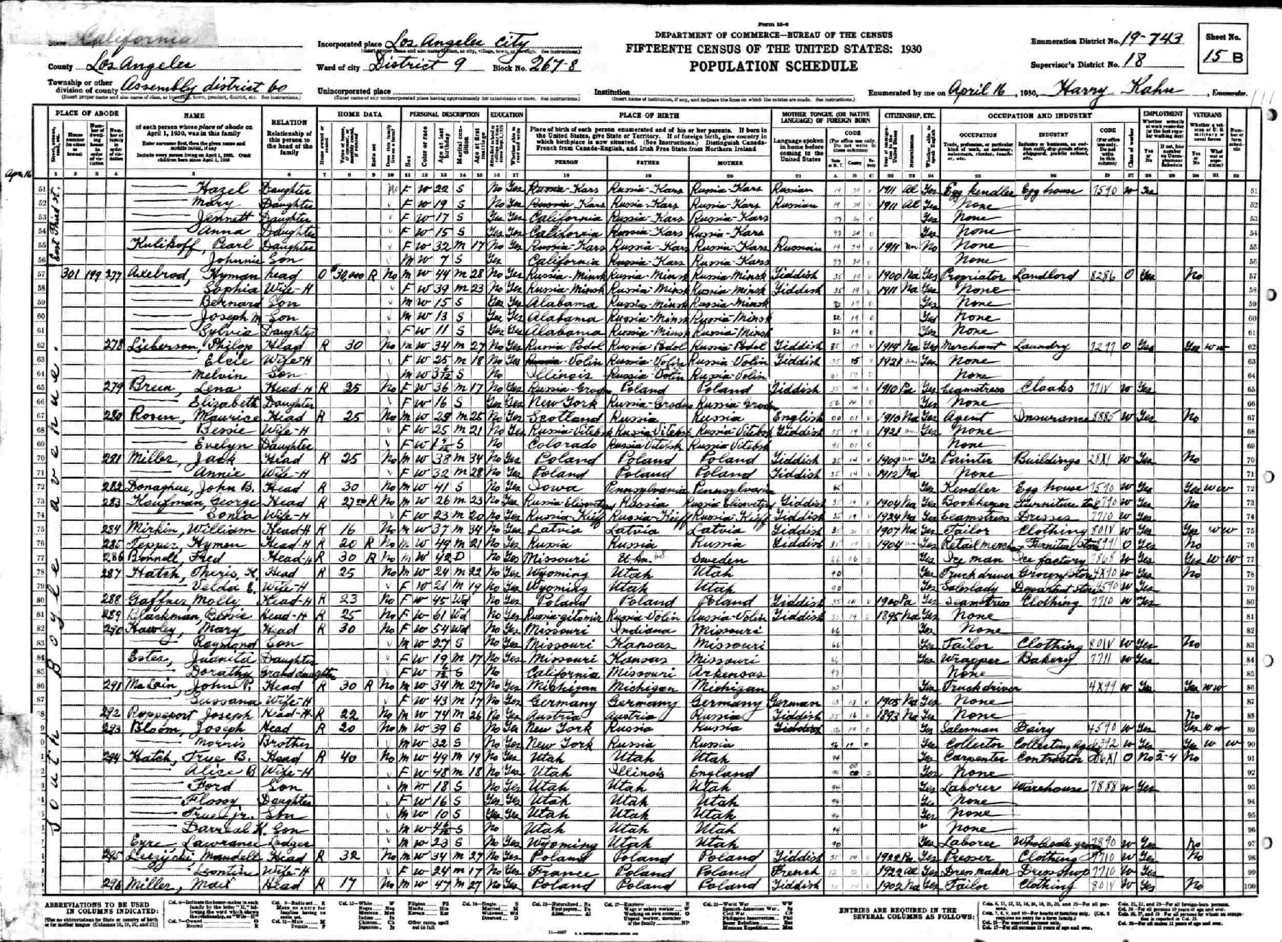 April 16, 1930 - 301 Boyle Avenue, Ward 9, Block 267-8, Assembly District 60, Supervisor's District 18, Enumeration District 19-743, Los Angeles, Los Angeles County, California