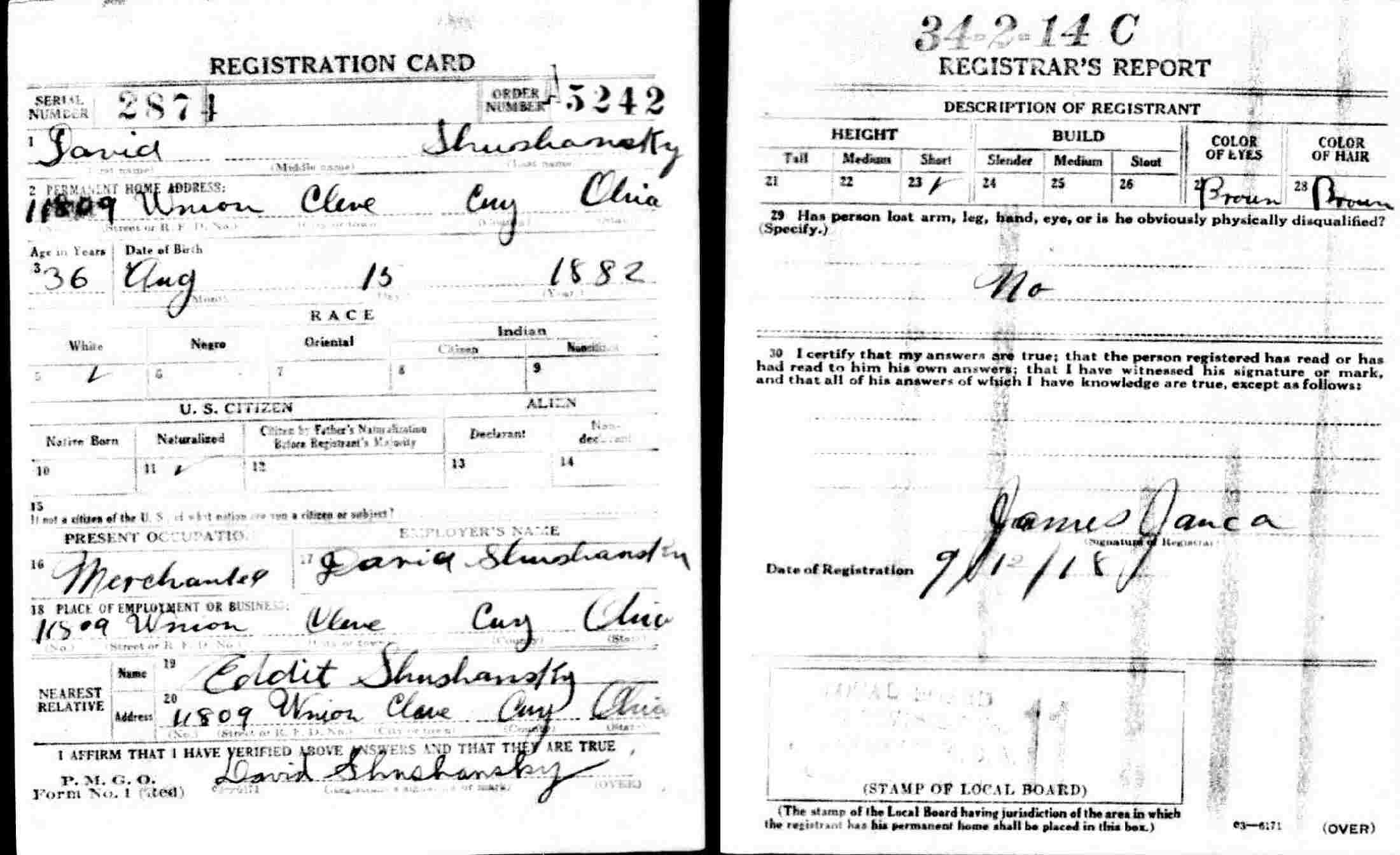 September 12, 1918 - 11708 Union, Cleveland, Cuyahoga County, Ohio.