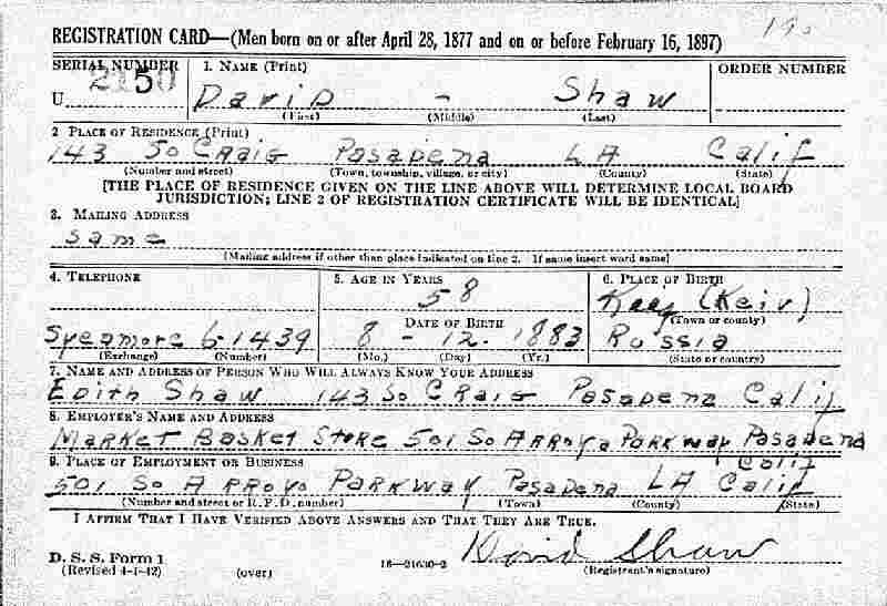Notes for DAVID (NEE SHESHANSKY) SHAW: