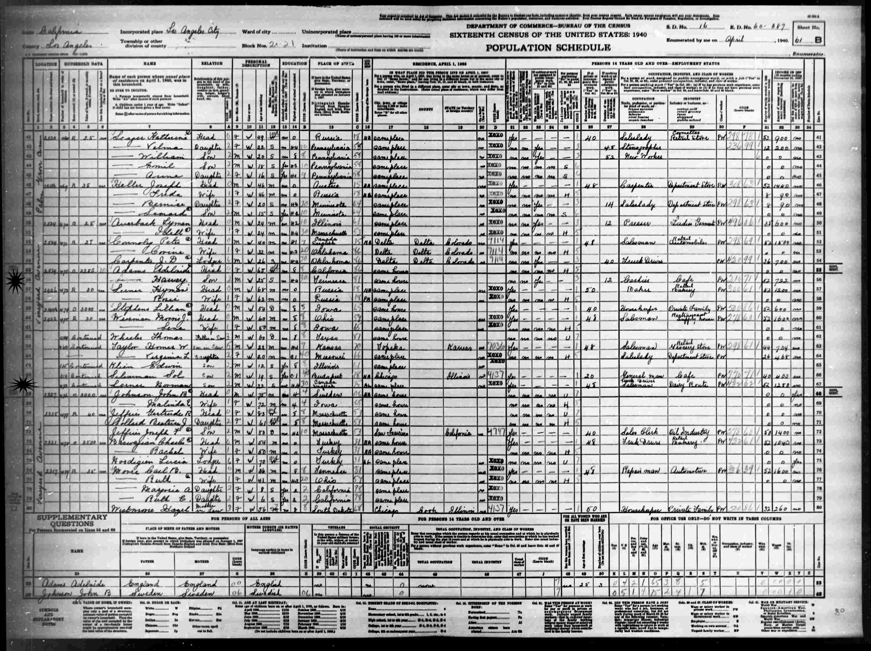 April 2, 1930 - 1170 East 54th Street, Block 446, Supervisor's District 17, Enumeration District 19-318, Los Angeles, Los Angeles County, California.
