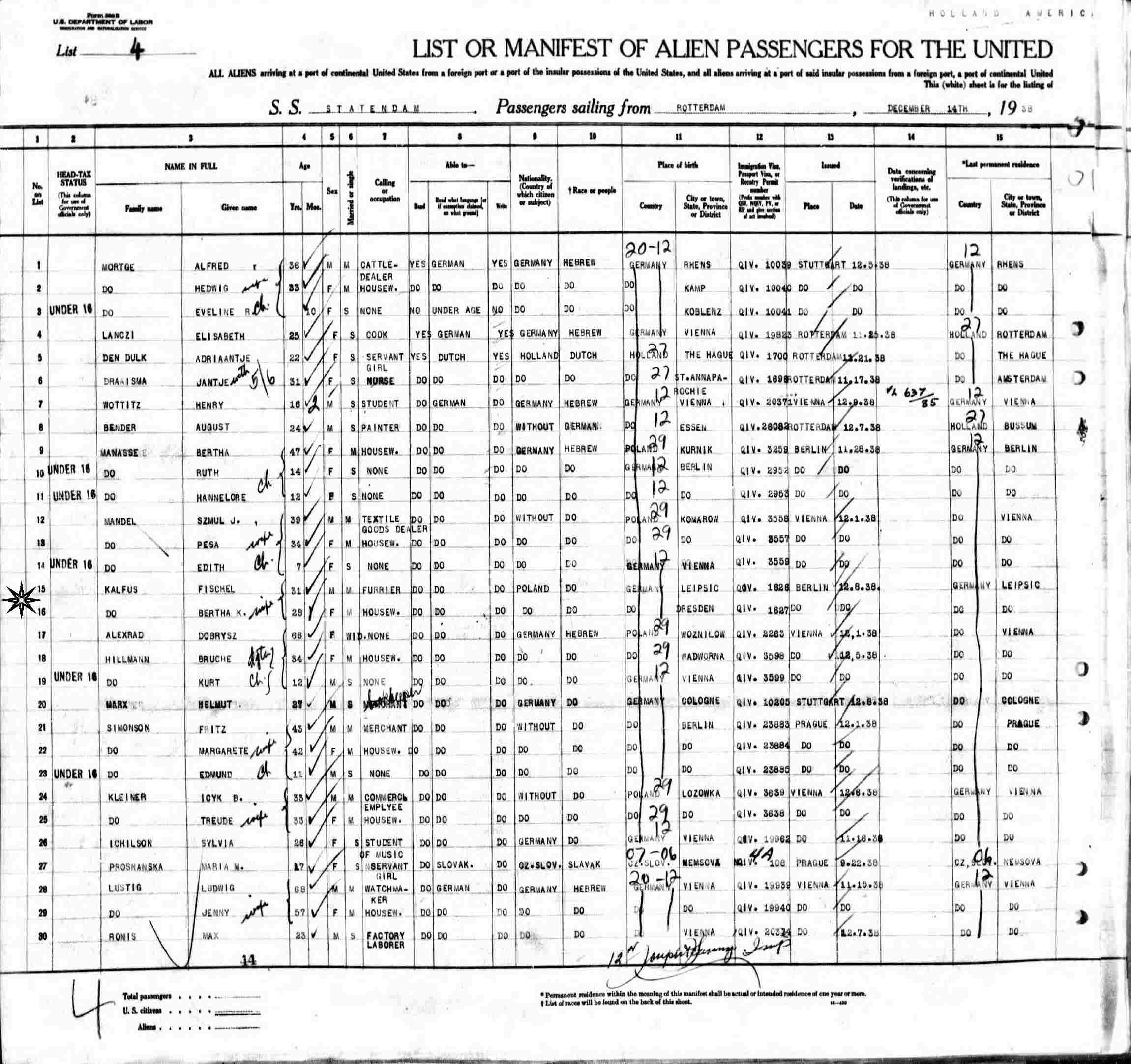 Passport to U.S. Issued: December 8, 1938 in Berlin, Germany.