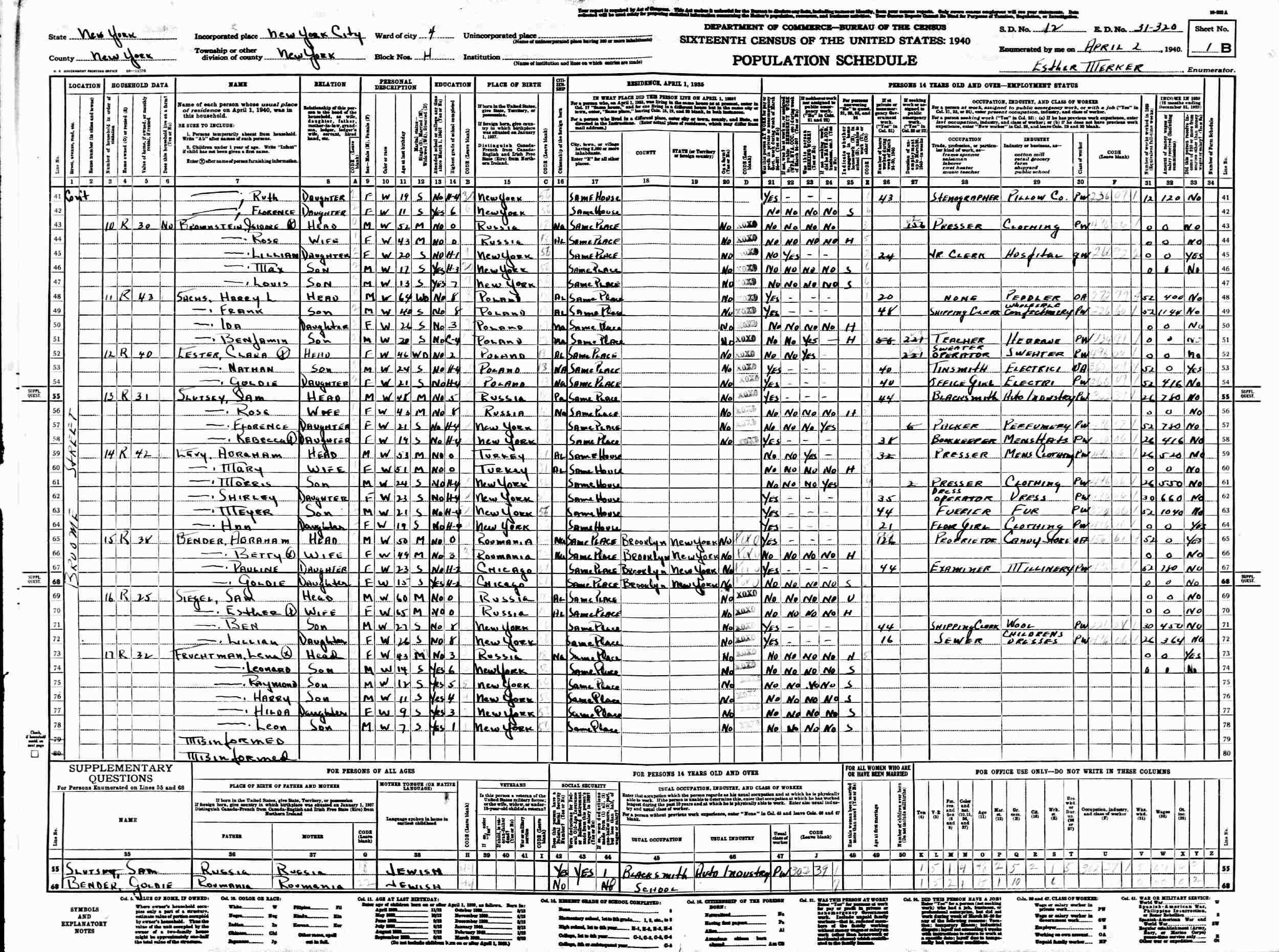 April 2, 1940 - 171 Broome Street, Ward 4, Block H, Supervisor's District 12, Enumeration District 31-320, New York City, New York.