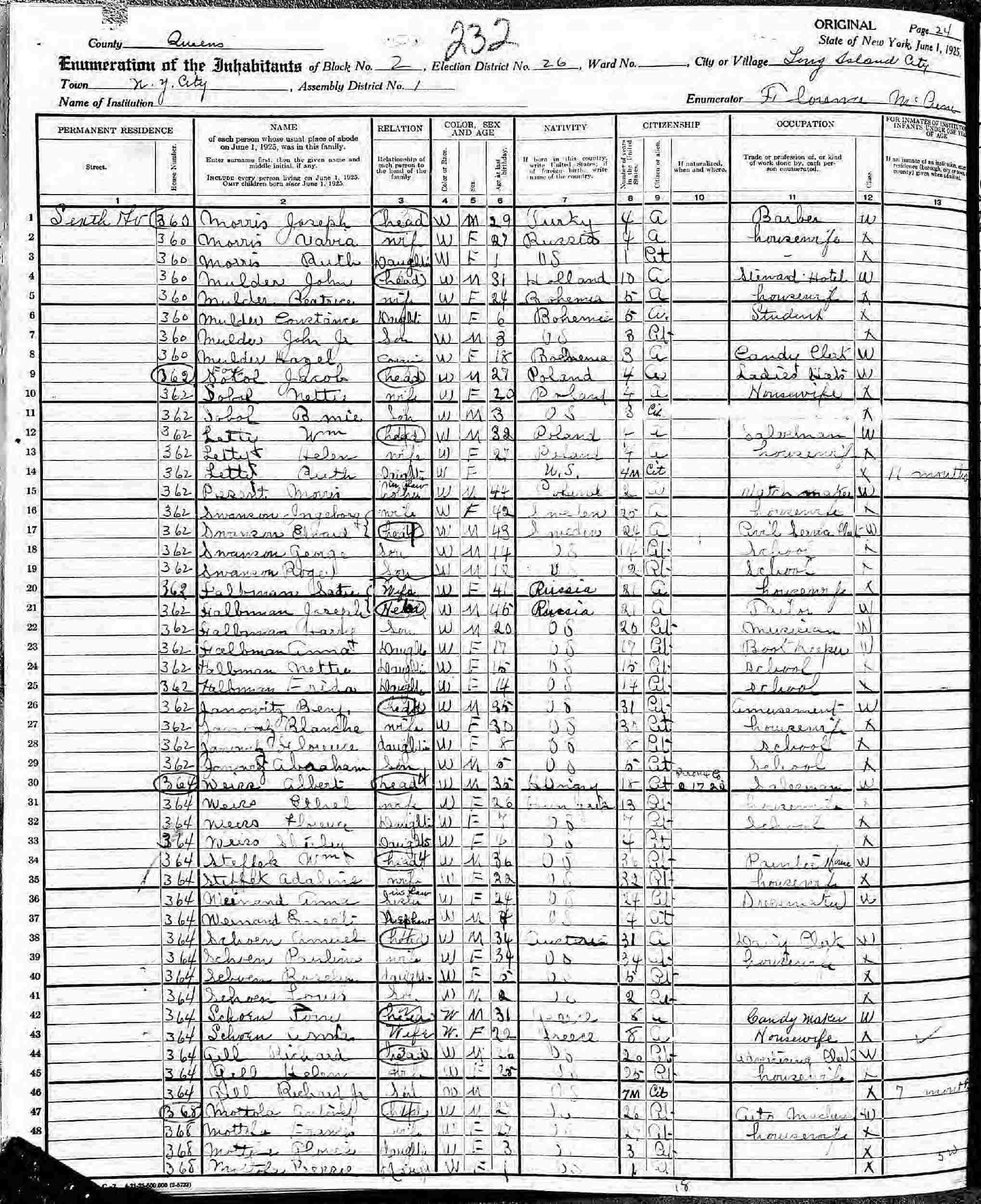 June 1, 1925 - 362 6th Avenue, Block 2, Assembly District 1, Election District 26, Long Island City, New York City, Queens County, New York.
