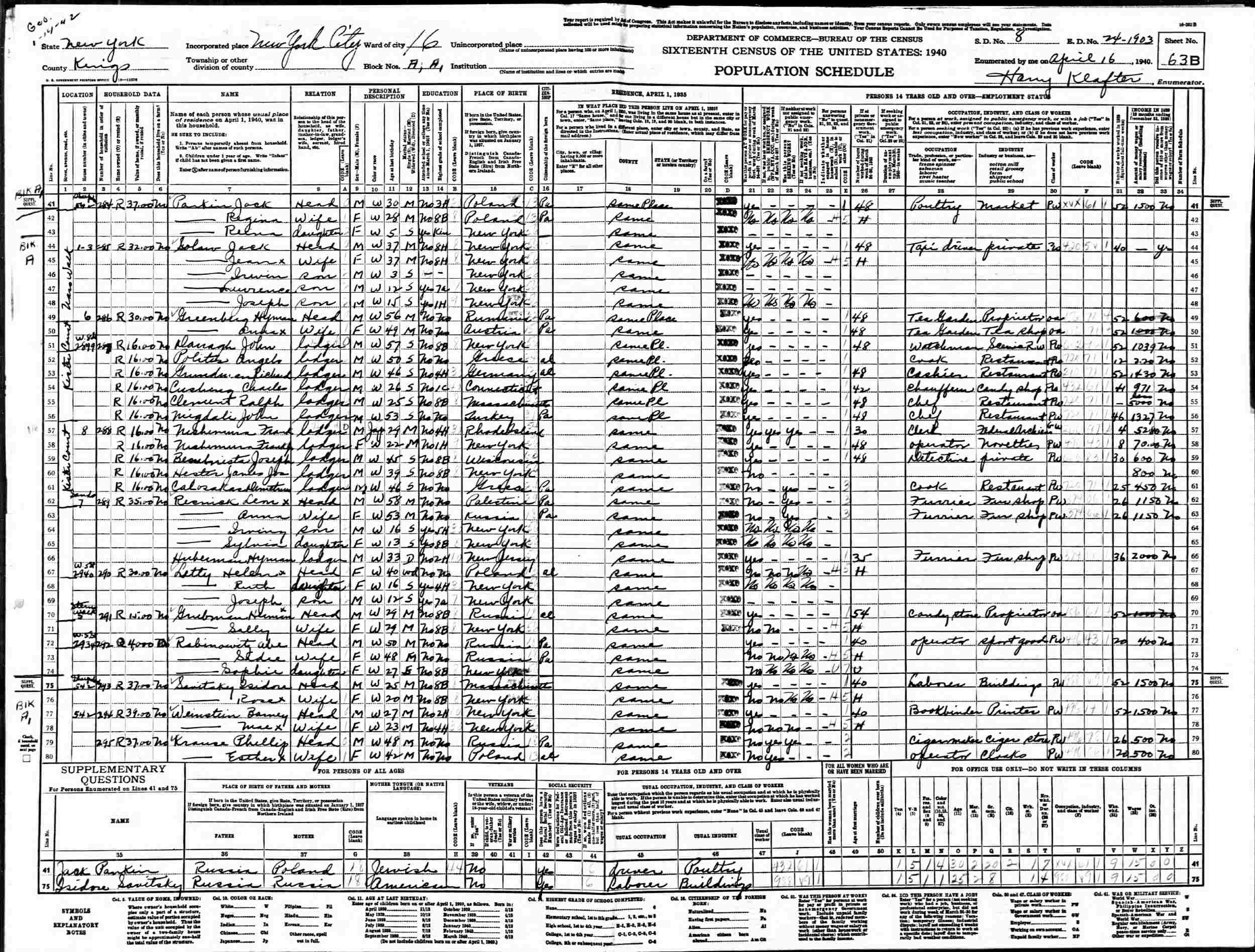April 16, 1940 - 2940 W 58th, Ward 16, Block A, Supervisor's District 8, Enumeration District 24-1903, New York City, Kings County, New York.