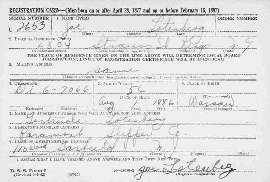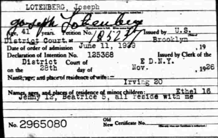 Notes for JOSEPH LOTENBERG: