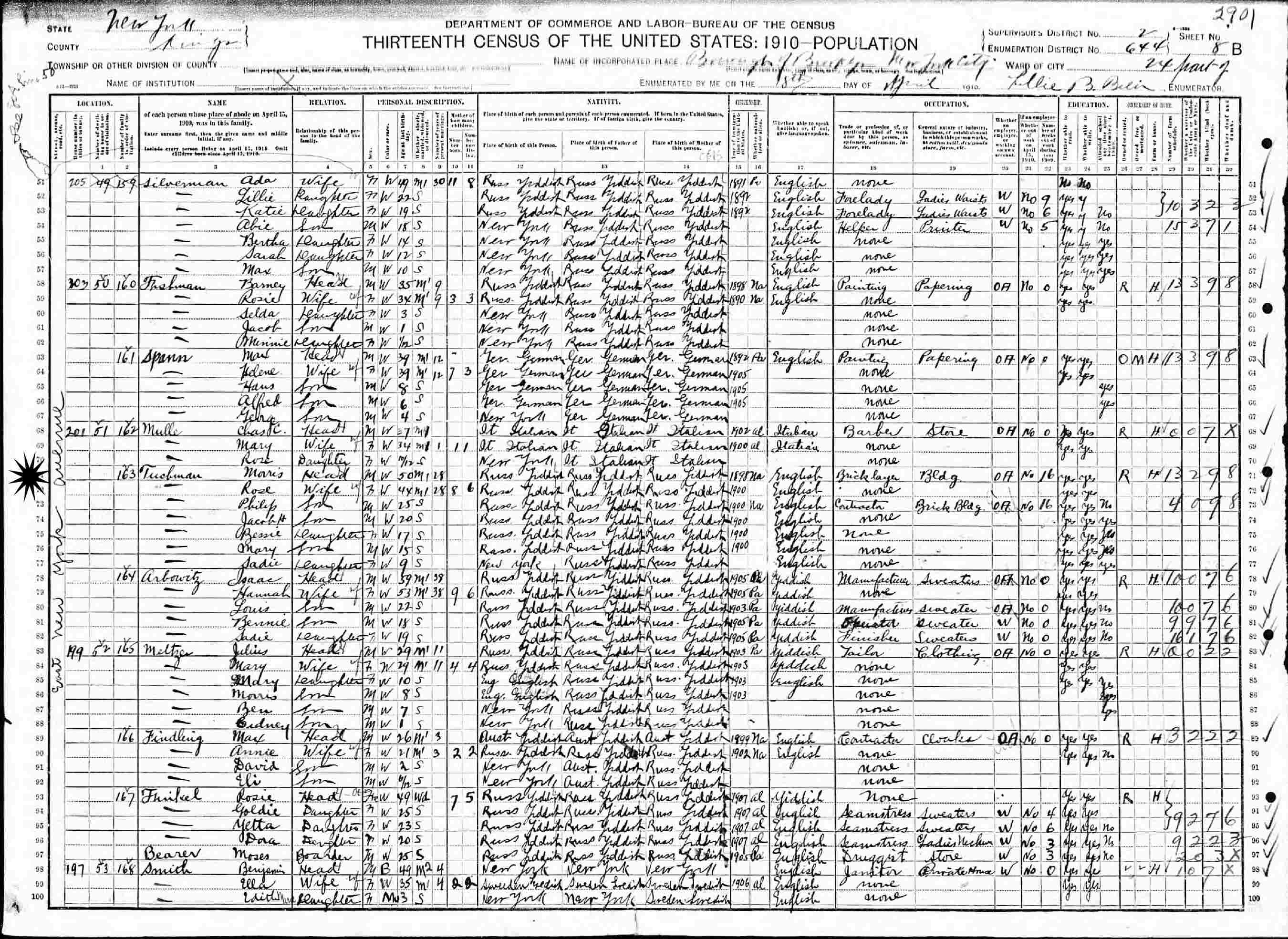 April 18, 1910 - 201 East New York Avenue, Ward 24, Supervisor's District 2, Enumeration District 644, Brooklyn, Kings County, New York.
