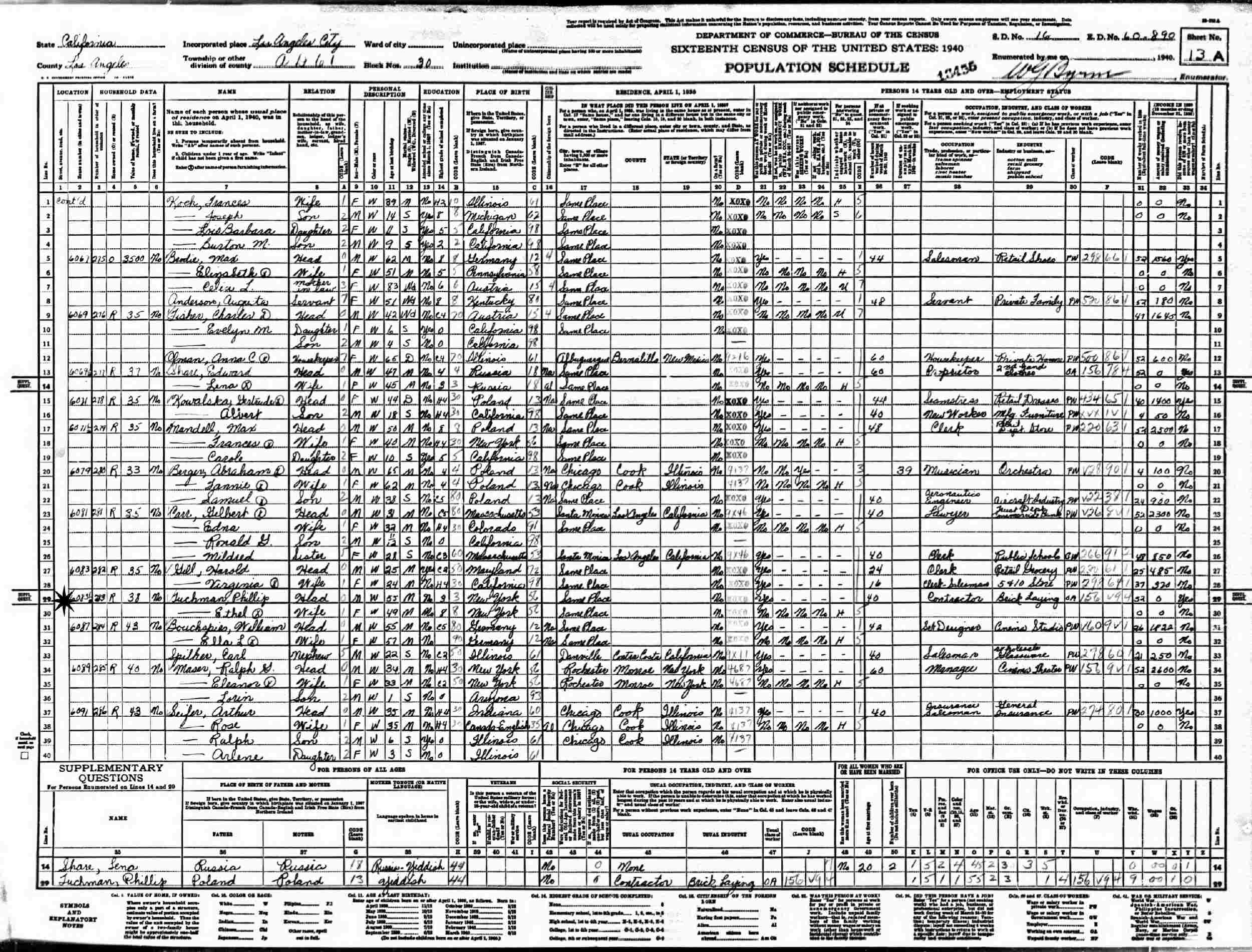 1940 - 6083 1/2 Crescent Heights Blvd, Assembly District 61, Block 30, Supervisor District 16, Enumeration District 60-890, Los Angeles, Los Angeles County, California.