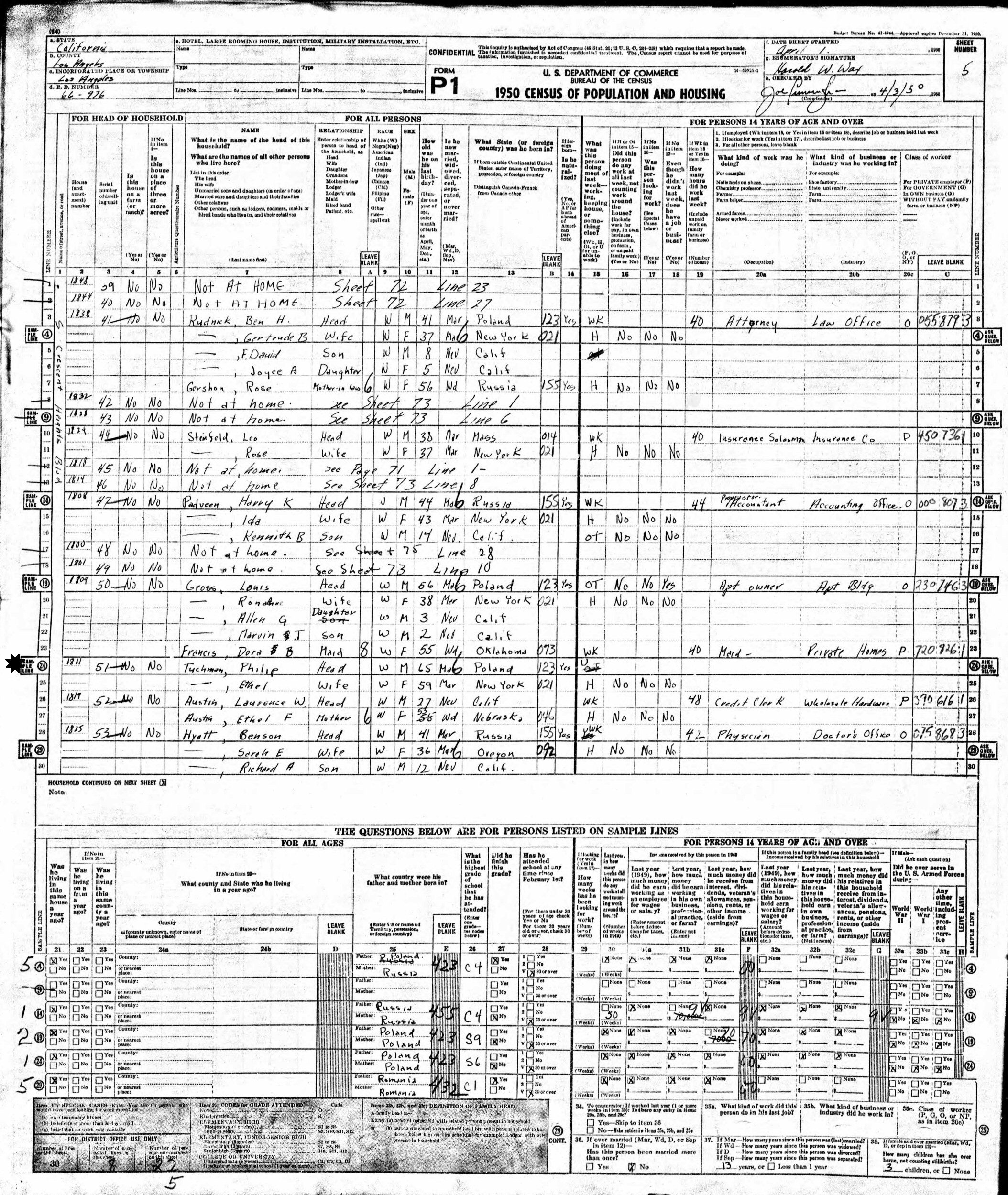 April 1, 1950 - 1811 S Crescent Heights Blvd, Enumeration District 66-976, Los Angeles, Los Angeles County, California.