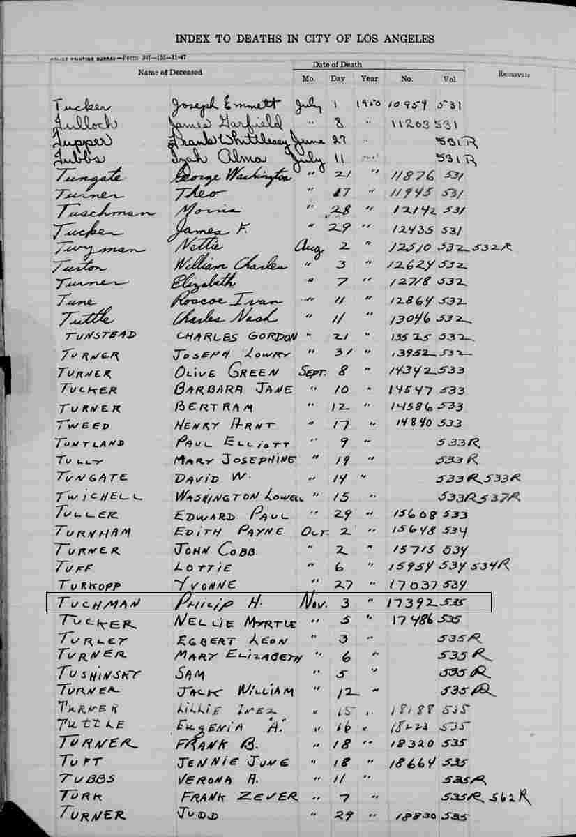 Notes for PHILIP H TUCHMAN: