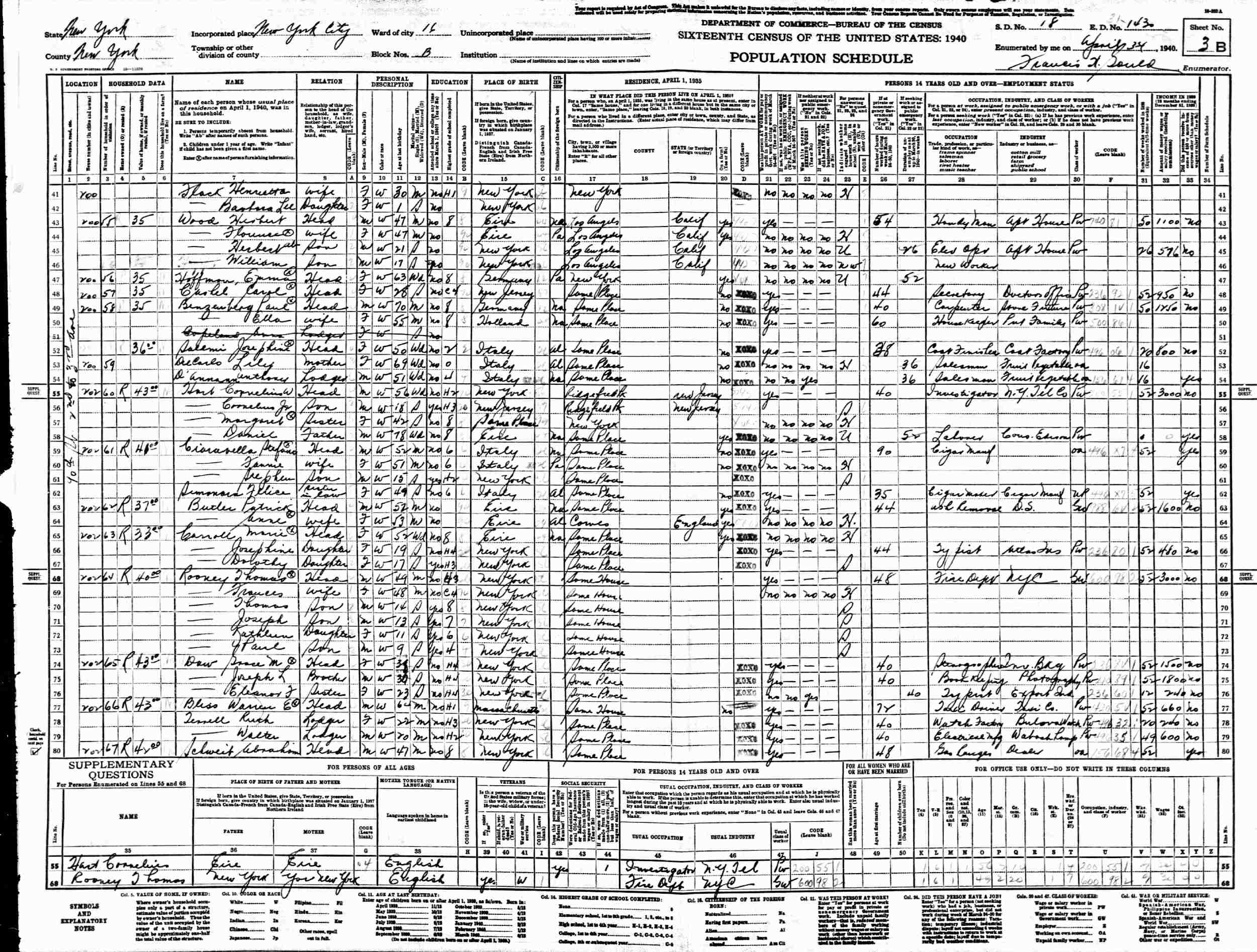 April 3-4, 1940 - 202 90th Street, Block B, Ward 16, Supervisor's District 17, Enumeration District 31-1430, New York City, New York.