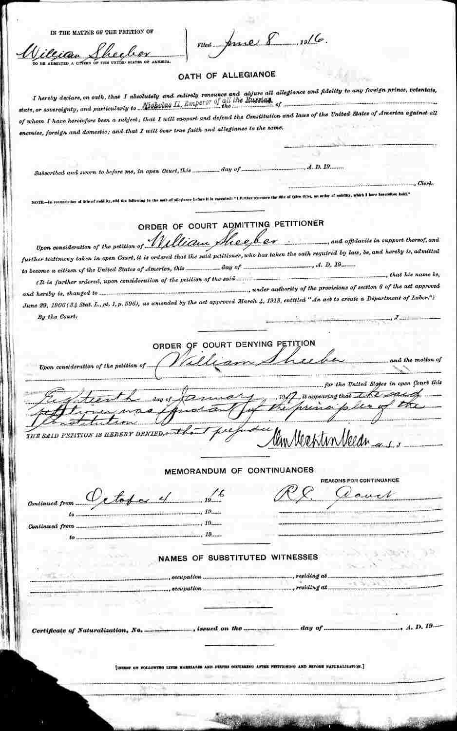 Petition For Naturalization: June 8, 1916.