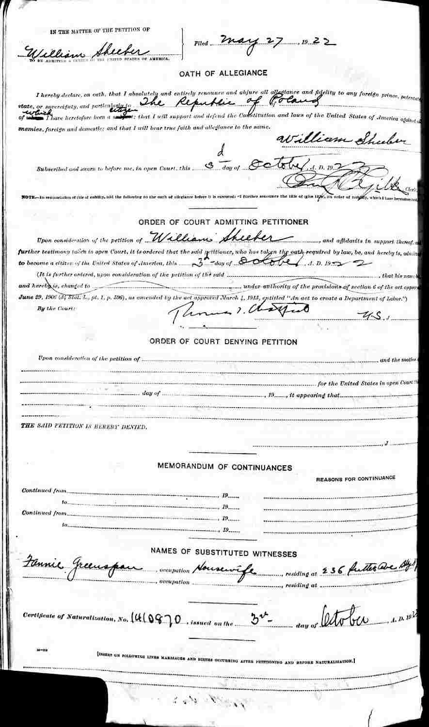 Second Petition For Naturalization: Mary 27, 1922.