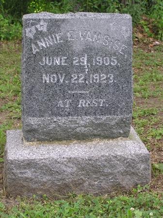 Notes for ANNIE E VAN SISE: Daughter of Nathan James and Annie L (Doty) Van Sise. Born: June 29, 1905 in New York State. Died: November 22, 1923 in Unknown. Buried: Bethpage Cemetery, Farmingdale, Nassau County, New York.