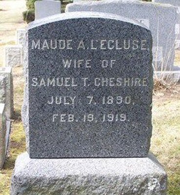 Mrs Cheshire is best known in Sayville and Bayport as the former Miss Maude LeCluse, youngest daughter of Mr and Mrs Charles LeCluse, now of Blue Point. She was a delightful young girl and although her home was in Bayport she made many friends in Sayville while attending high school there, graduating in the class of 1907. After finishing at the local school, she attended Oneonta Normal School, later teaching in Bridgehampton and in Nassau County before going to Huntington to become a member of the faculty there. In that village she meet Mr Cheshire, a prominent young Huntingtonian, and was married on February 9th, three years ago. She was in New York with her husband on her wedding anniversary, celebrating the event, and two days later, last week Tuesday, was taken ill with influenza. So swiftly did the end come that few of her old friends here knew of the illness and word of her death received here yesterday morning brought great sorrow to many people.
