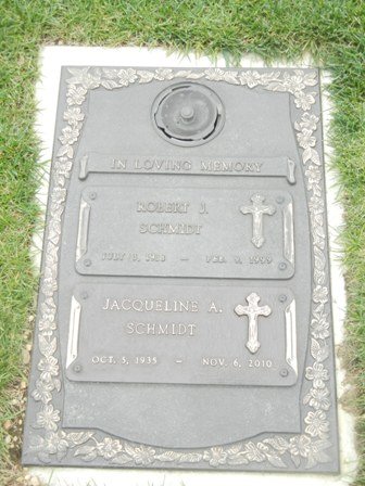 Notes for ROBERT J SCHMIDT: Son of ? and ?. Born: July 3, 1938 in Unknown. Died: February 9, 1999 in Unknown. Buried: Pinelawn Memorial Park, Farmingdale, Suffolk County, New York. Married: Jacqueline Agnes Van Sise Unknown in Unknown.