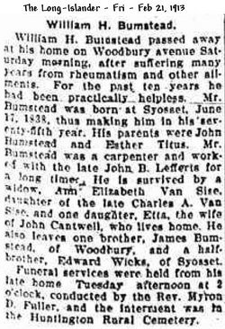 Died: February, 1913 in Huntington, Suffolk County, Long Island, New York.