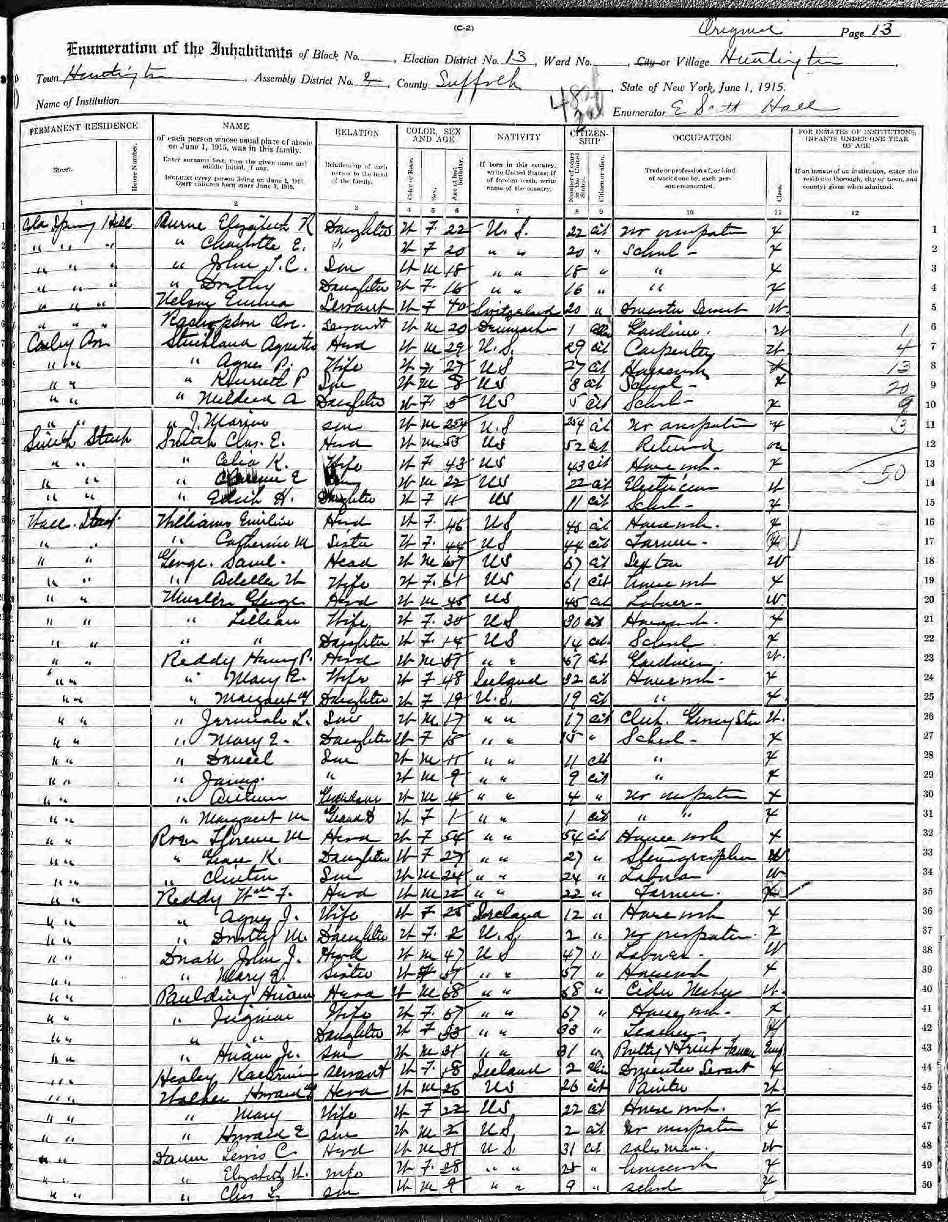 June 1, 1915 - New York State - Wall Street, Assembly District 2, Election District 13, Huntington, Suffolk County, New York.