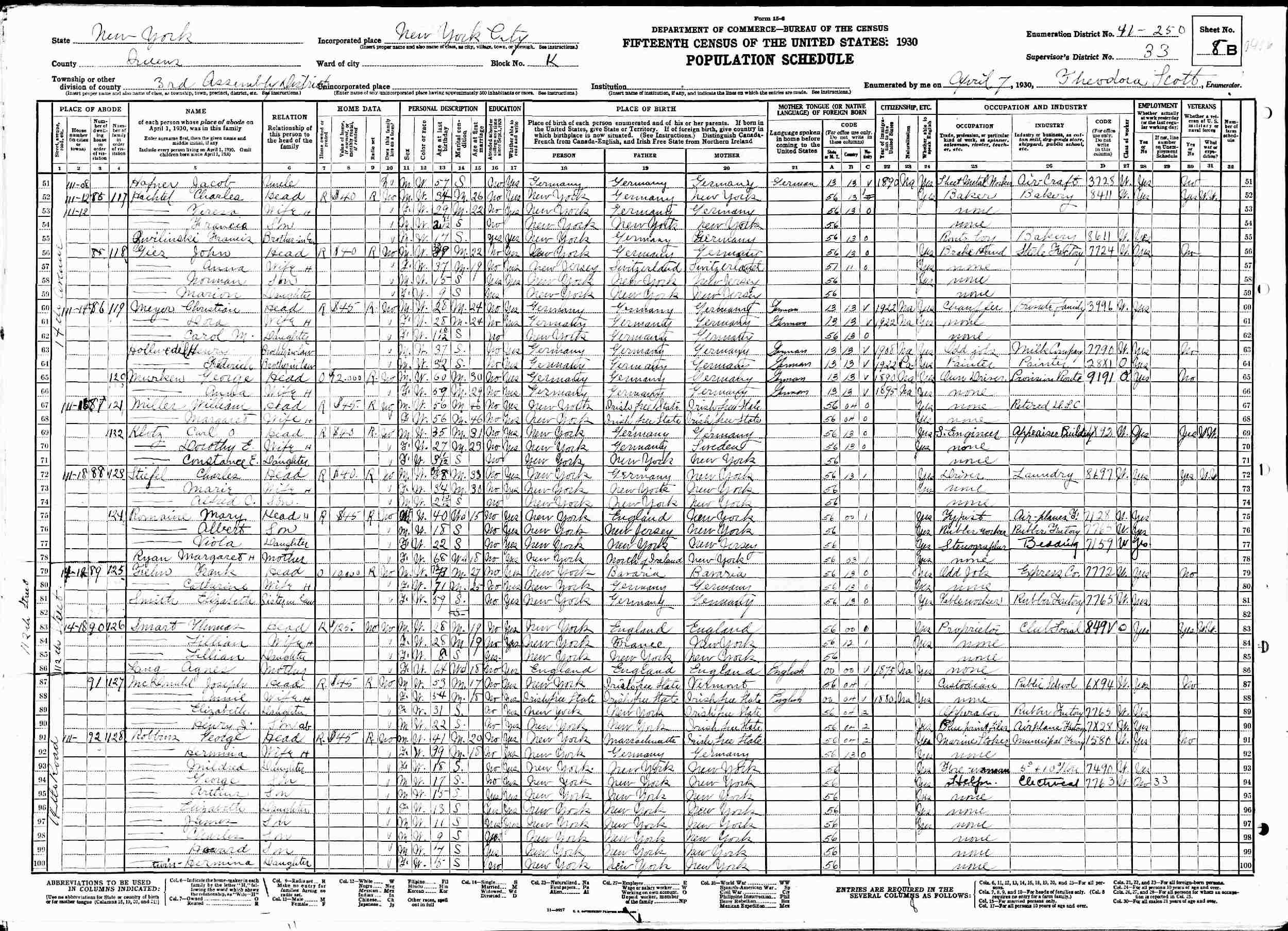 April 7, 1930 - 111-18 14th Avenue, Block K, Assembly District 3, Supervisor's District 33, Enumeration District 41-250, New York City, Queens County, New York.