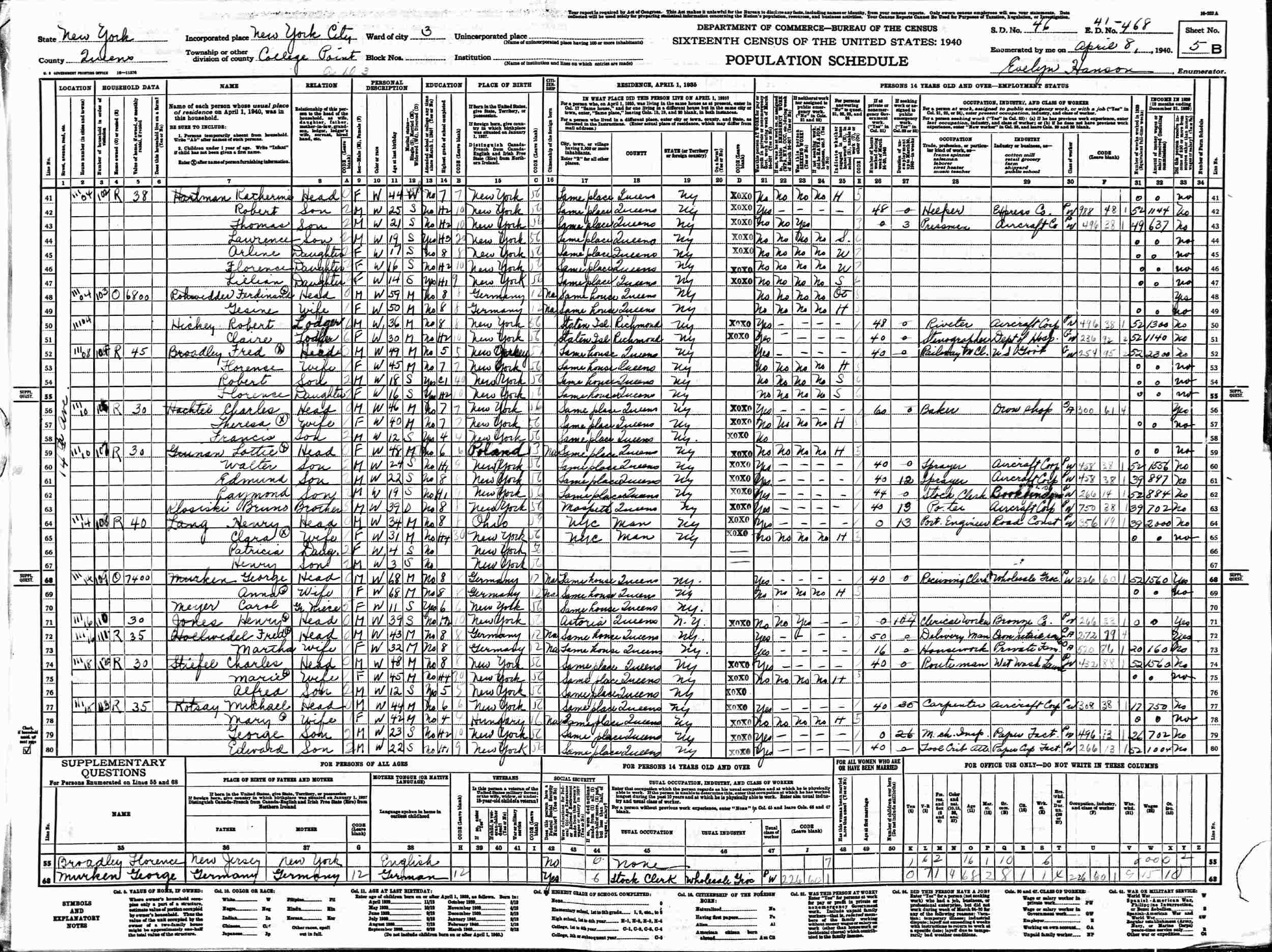 April 8, 1940 - 111-18 14th Avenue, Ward 3, Assembly District 3, Supervisor's District 46, Enumeration District 41-468, College Point, New York City, Queens County, New York.