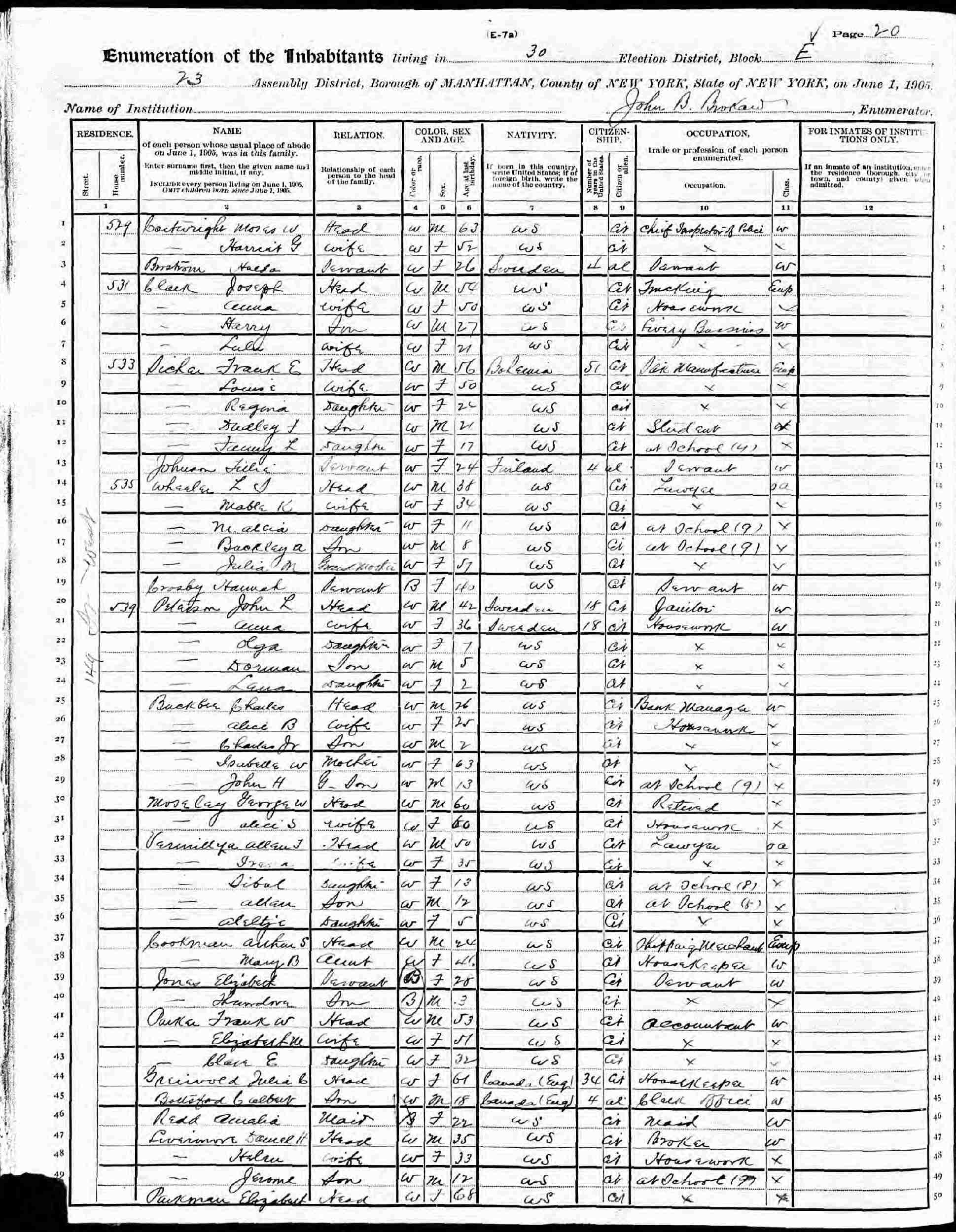 June 1, 1905 - New York State - 539 149th Street West, Assembly District 23, Election District 30, Block E, Manhattan, New York.
