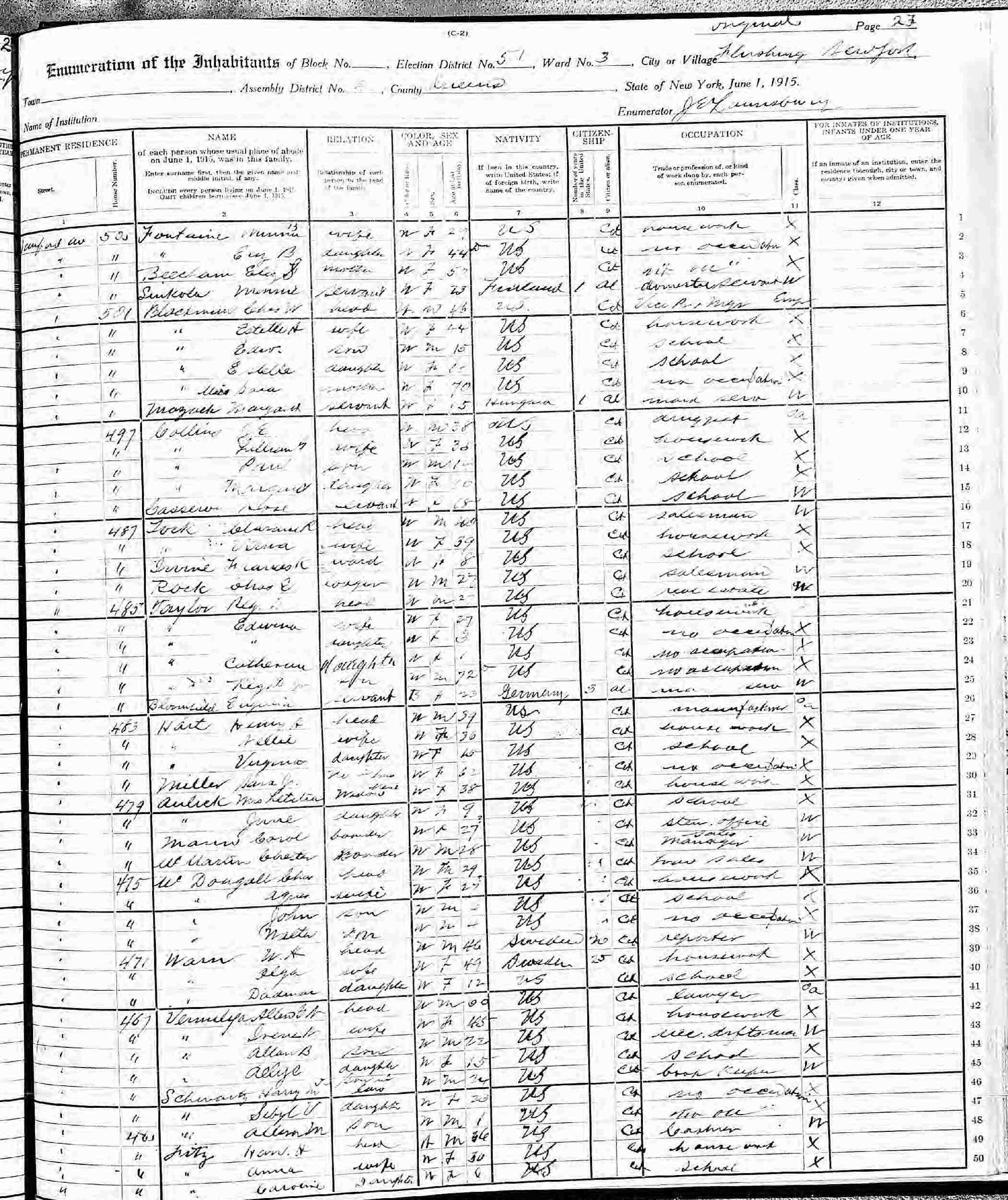 June 1, 1915 - New York State - 467 Sanford Avenue, Election District 51, Ward 3, Flushing, Queens County, New York.
