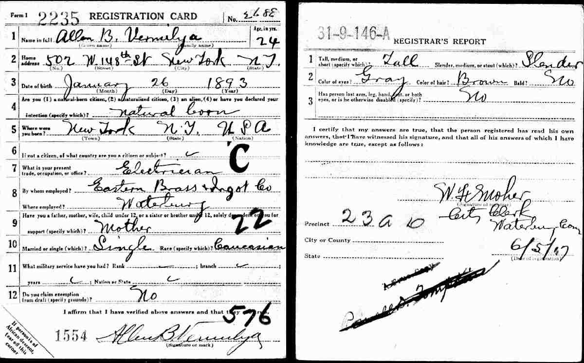 June 6, 1917 - Electrician, Eastern Brass & Ingot Co.