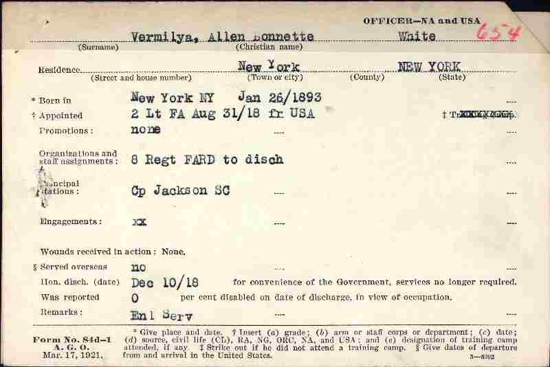 Notes for ALLEN BONNETTE VERMILYA, SR.: