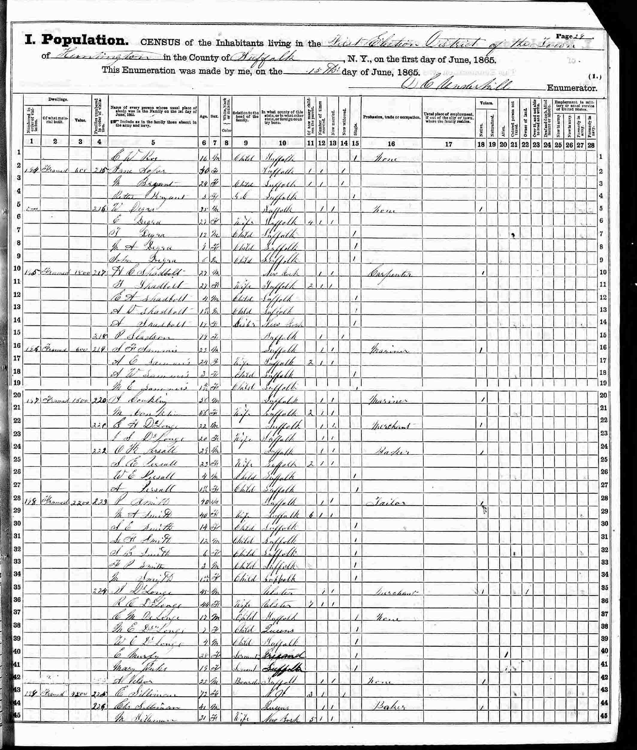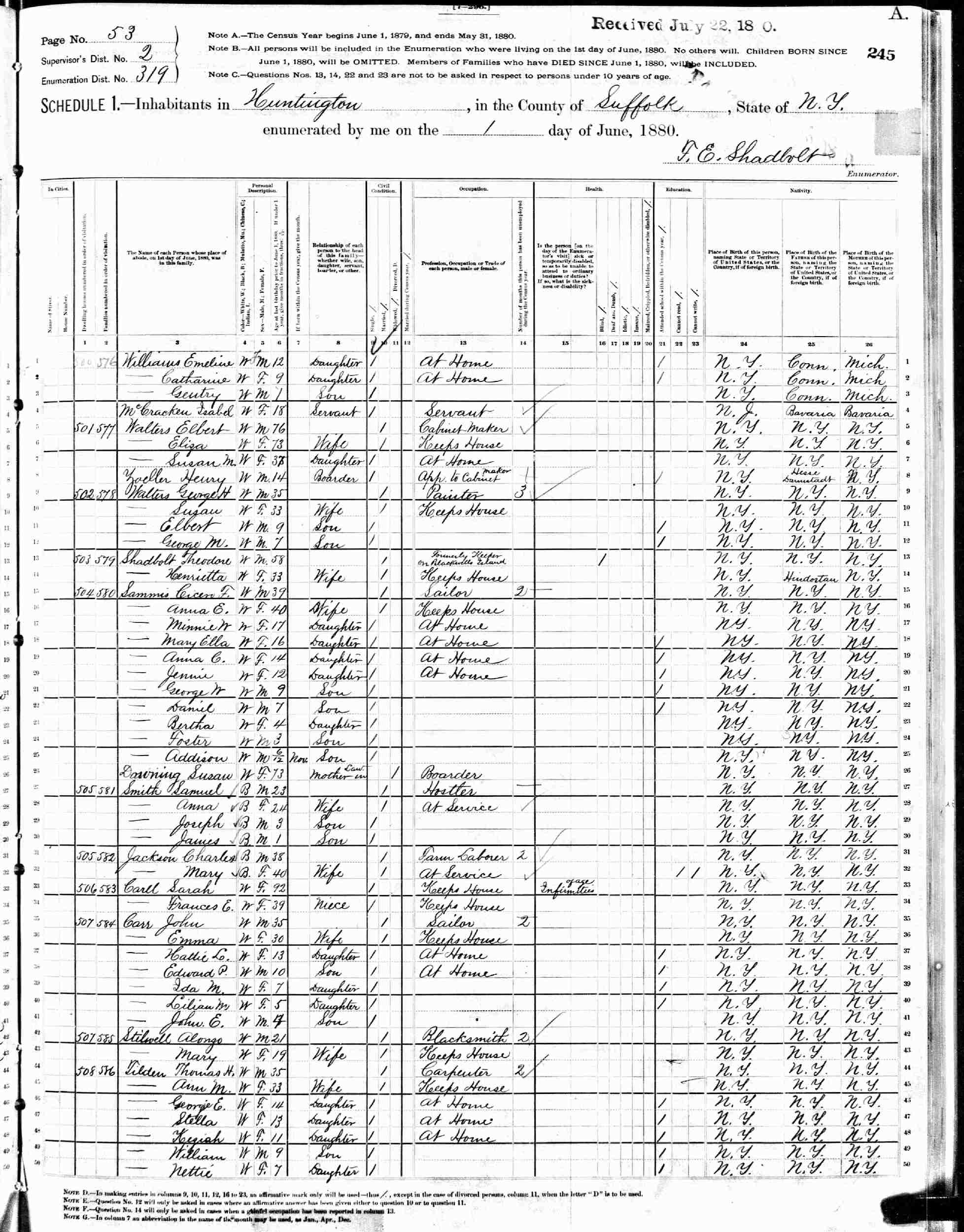 June 1, 1880 - Supervisor's District 2, Enumeration District 319, Huntington, Suffolk County, New York.