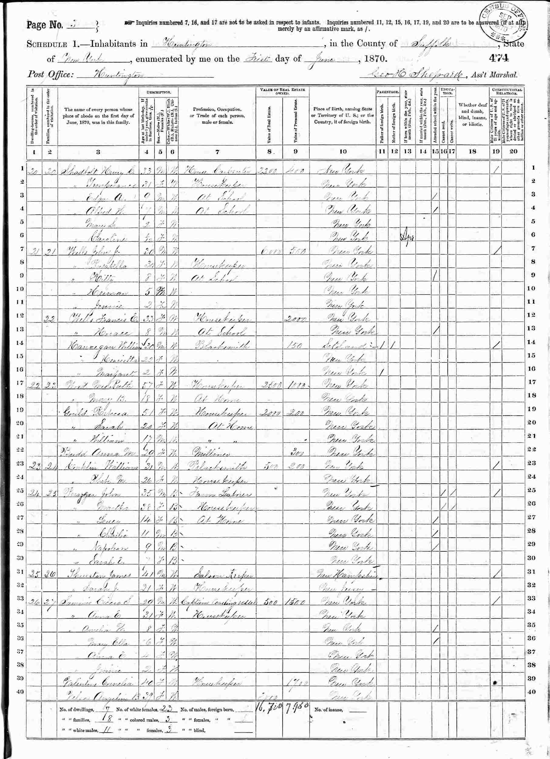 June 1, 1870 - Huntington, Suffolk County, New York.