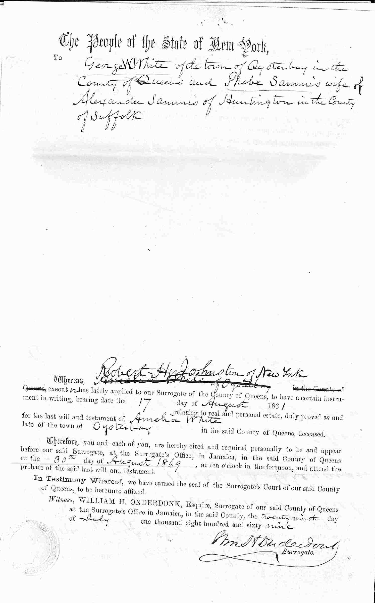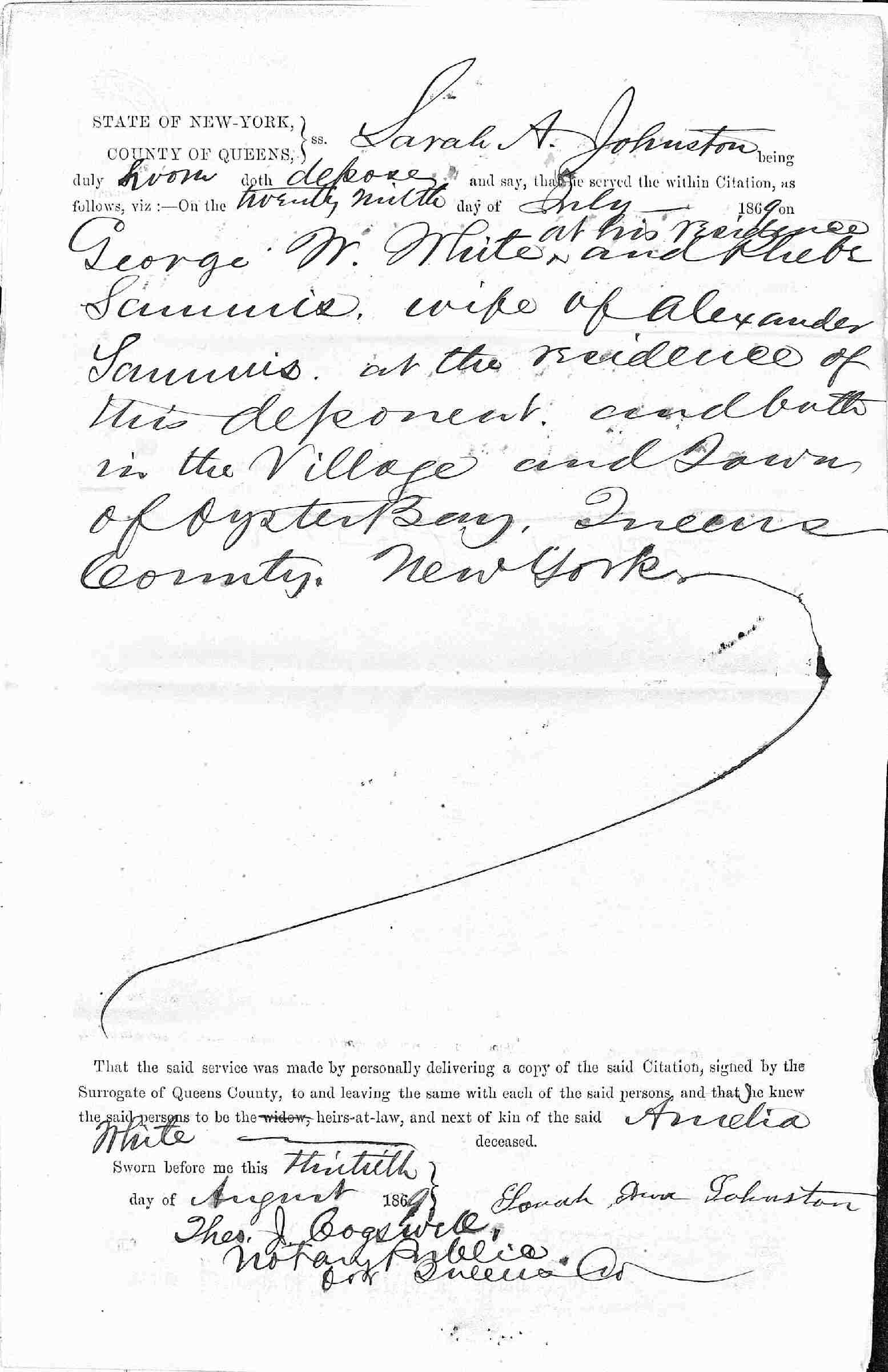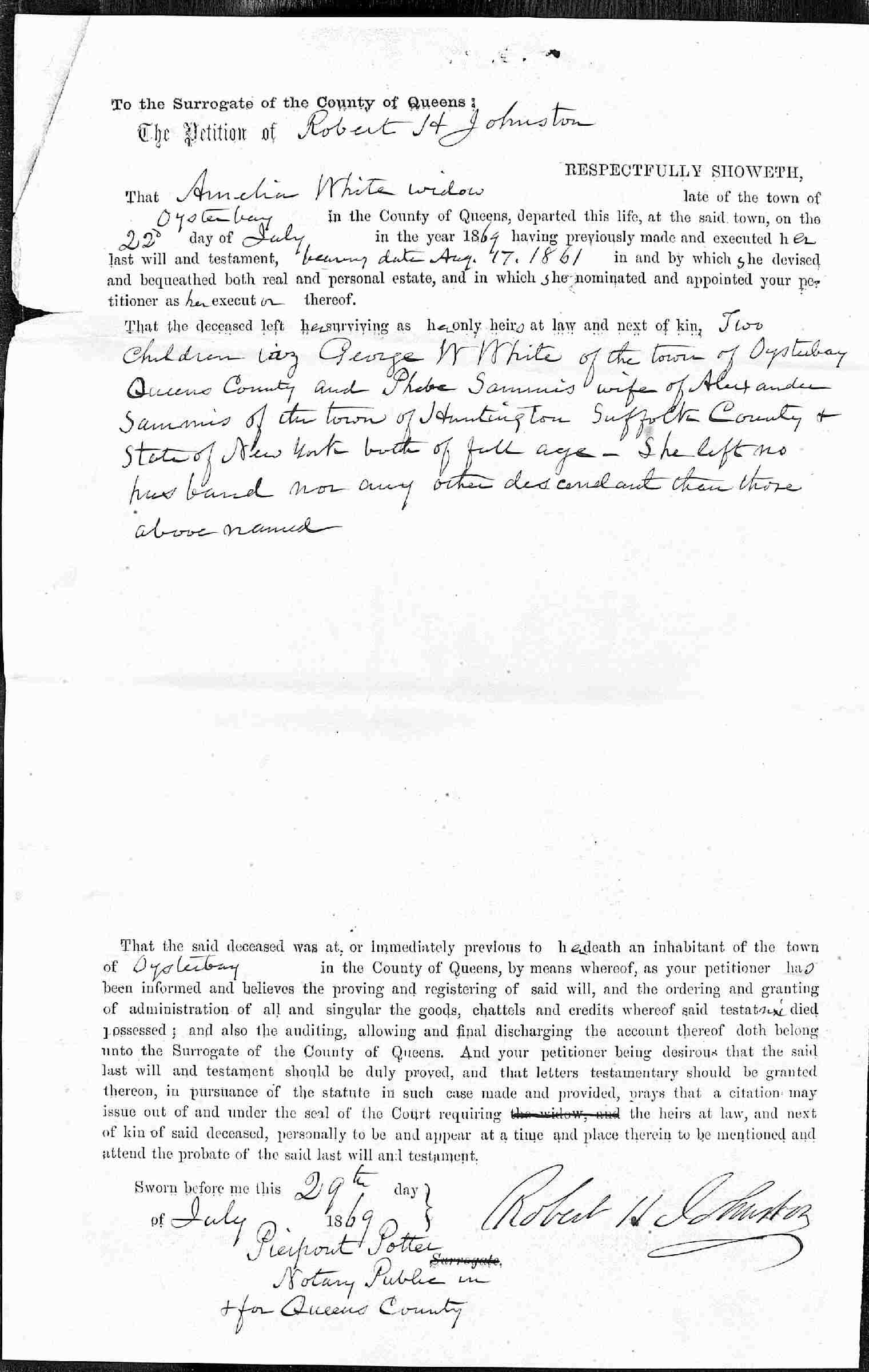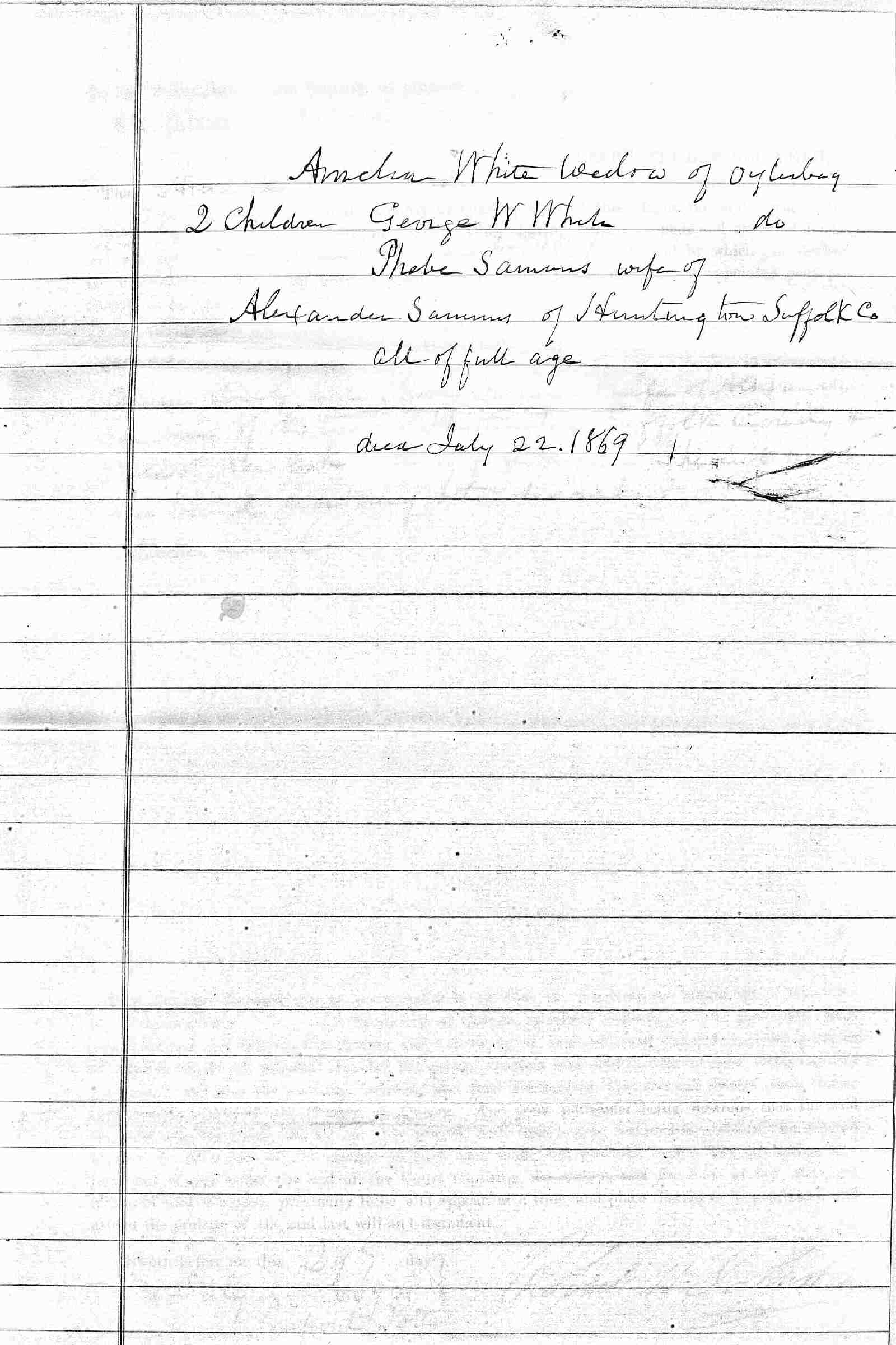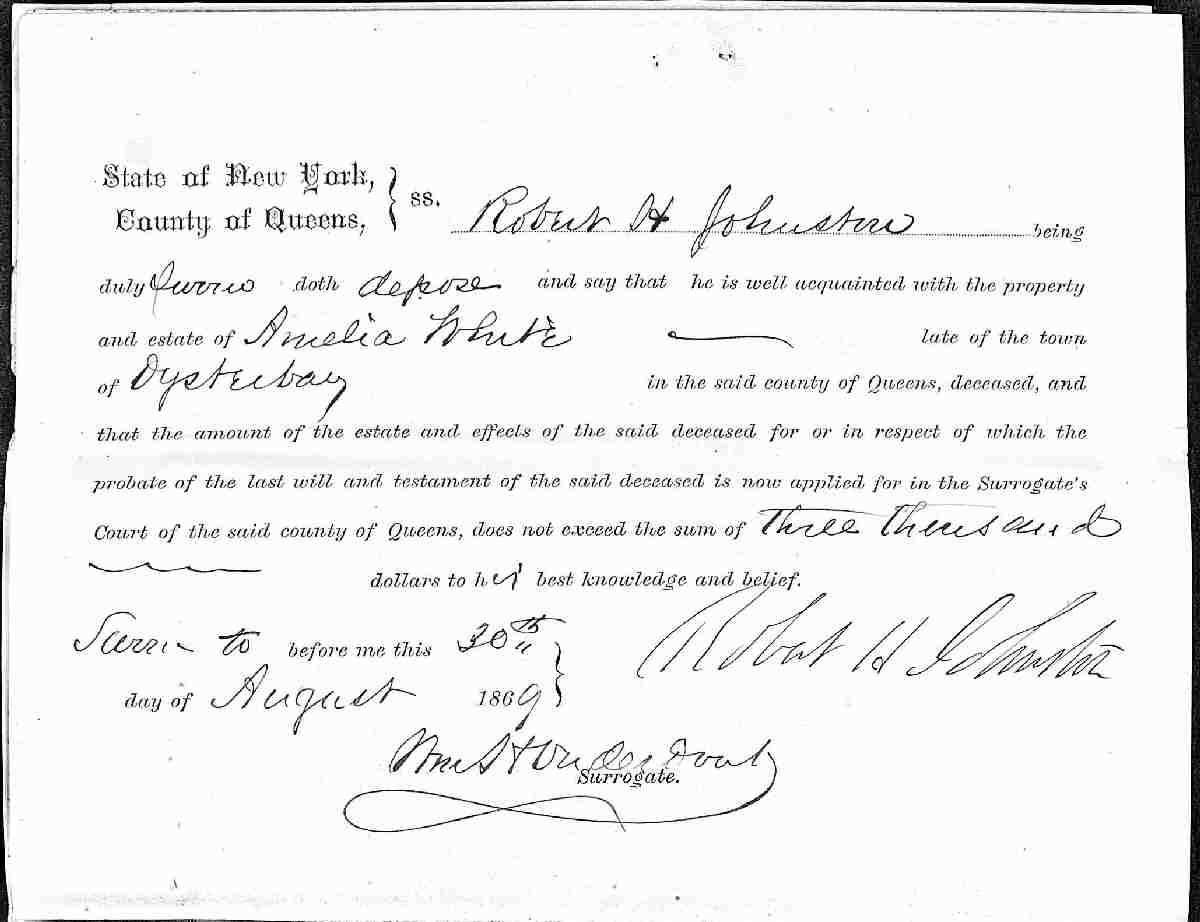 Buried: July 25, 1869 in Larrabee-White Cemetery, Oyster Bay, Nassau County, Long Island, New York.