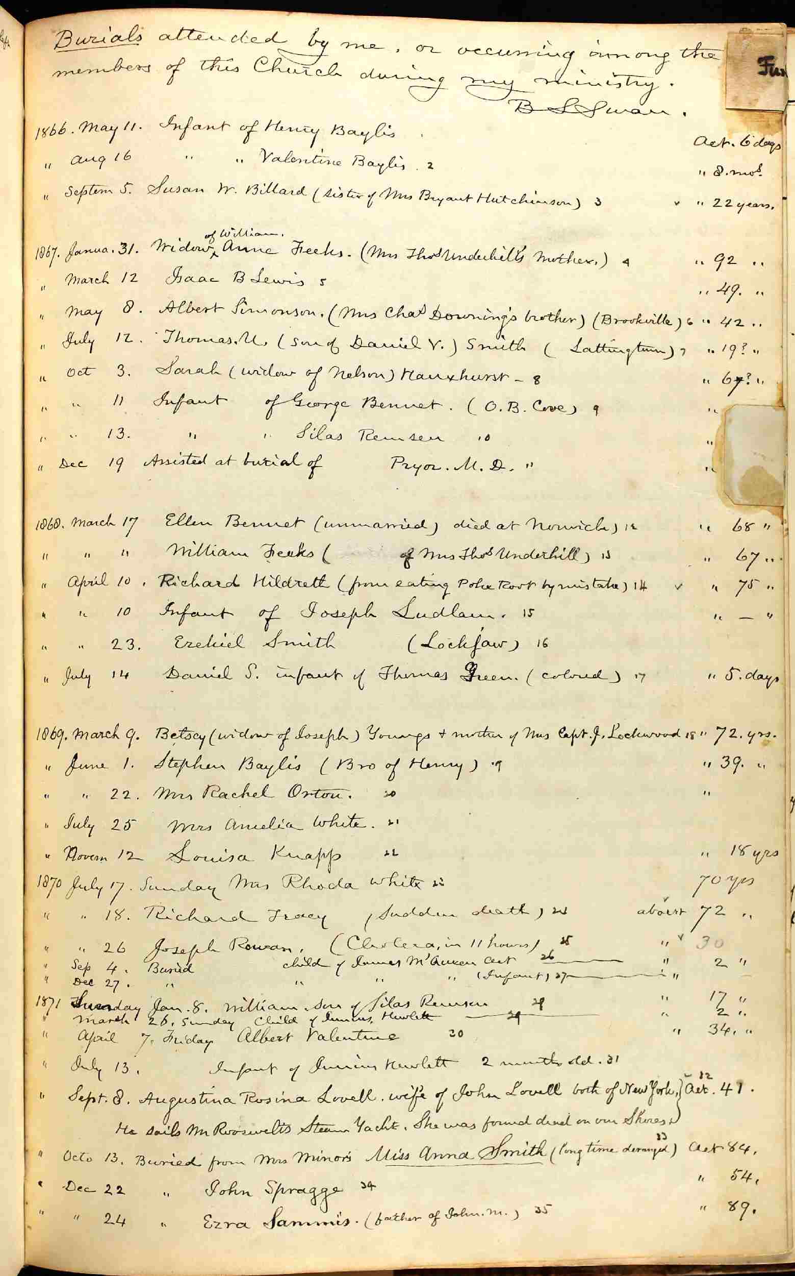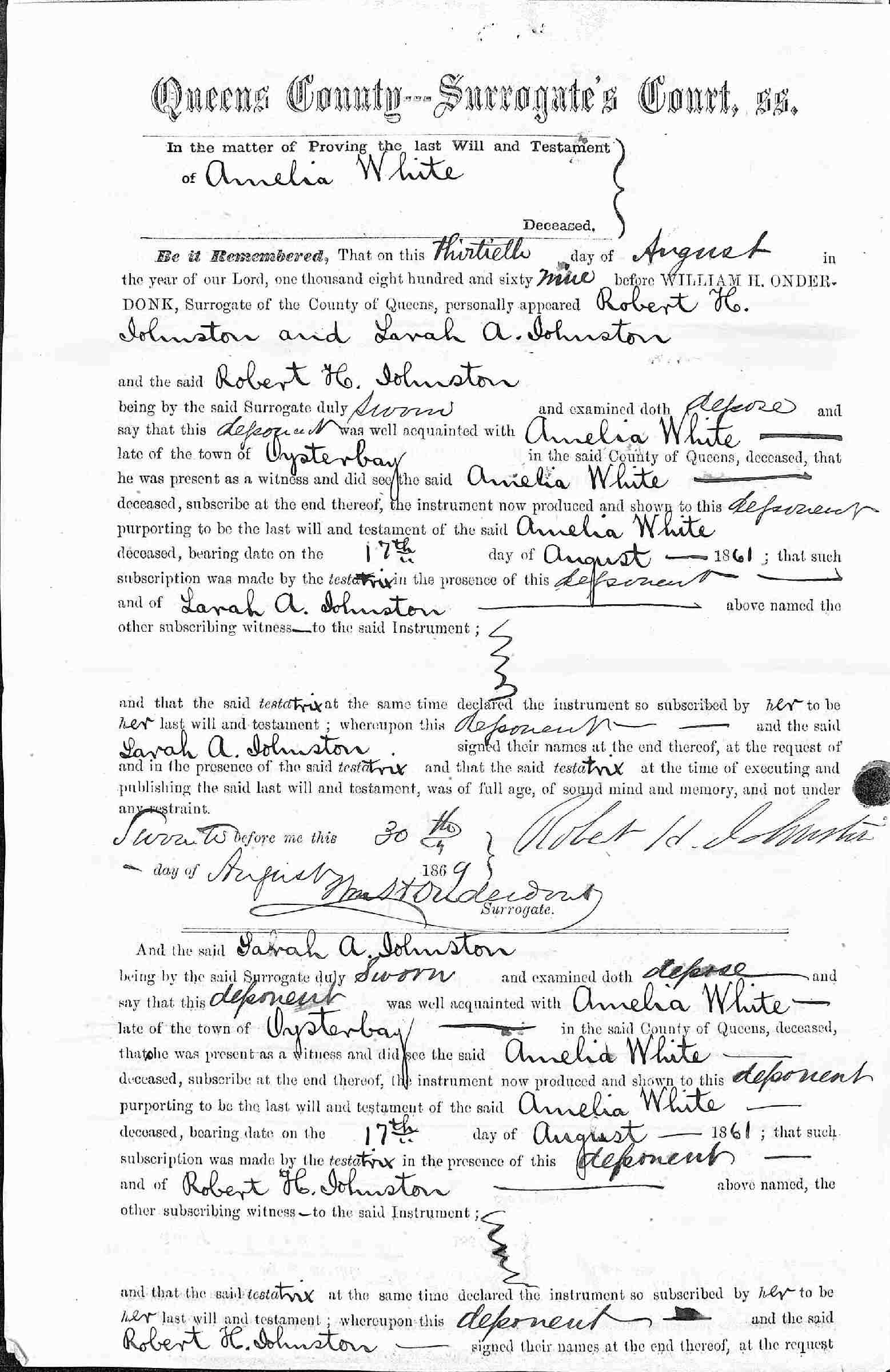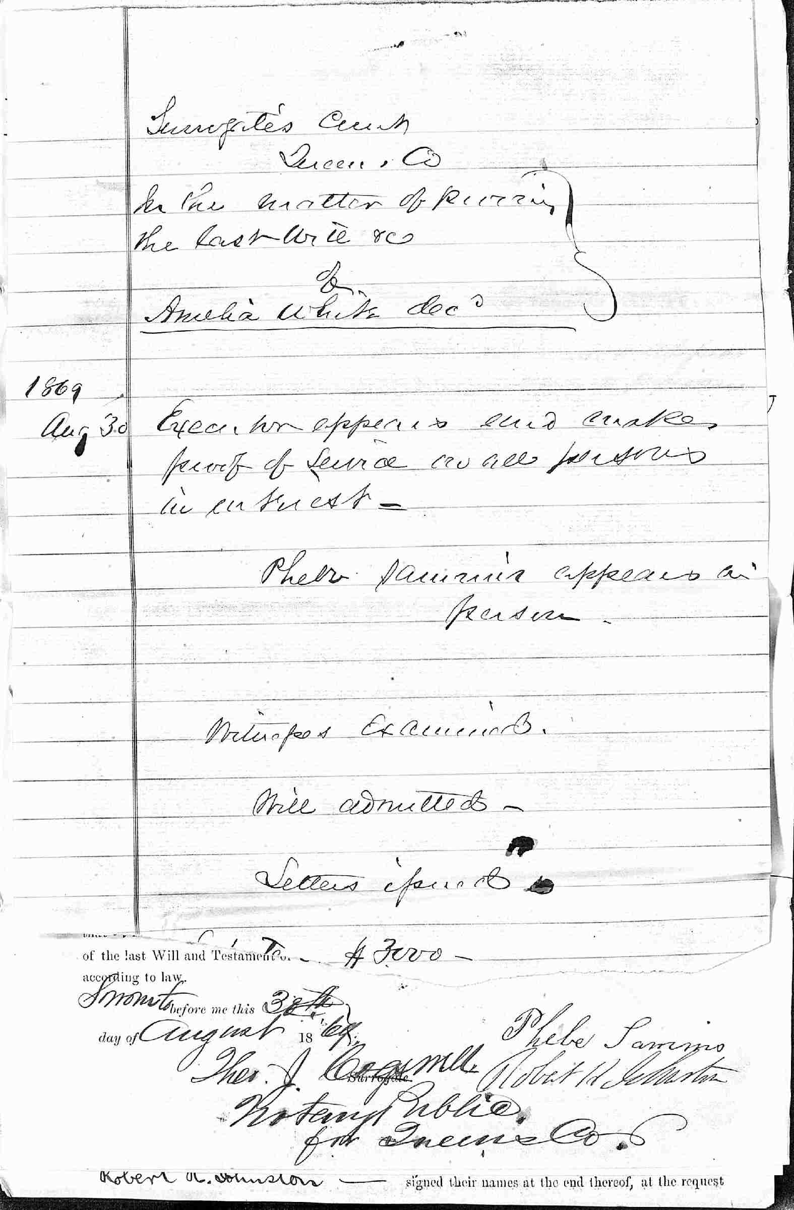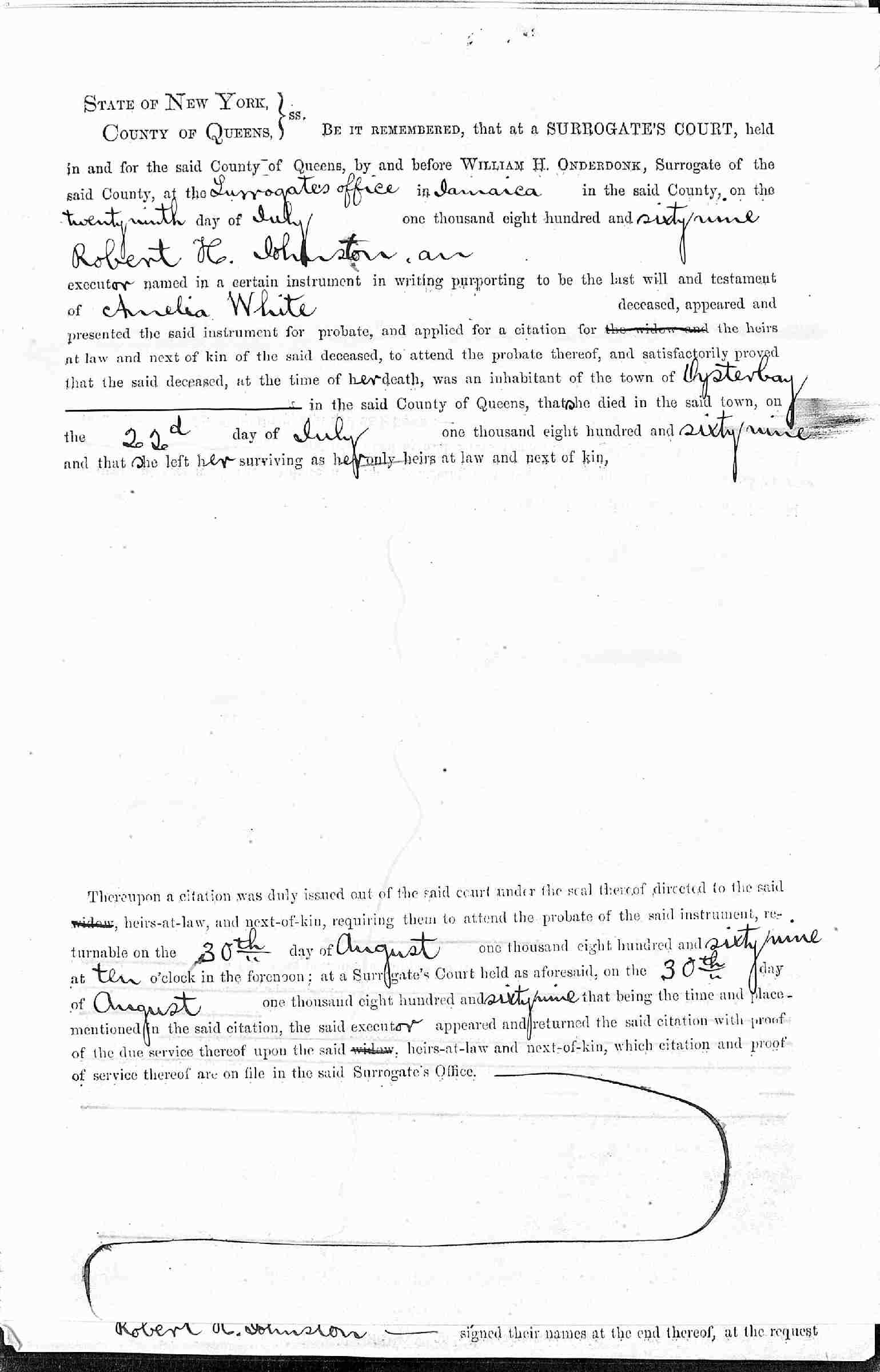 Buried: July 25, 1869 in Larrabee-White Cemetery, Oyster Bay, Nassau County, Long Island, New York.