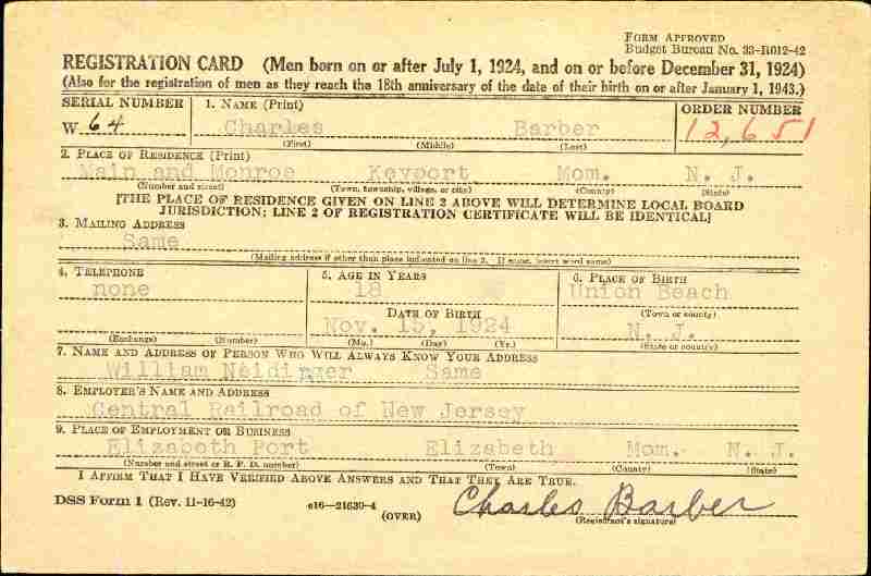 Born: November 15, 1924 in Union Beach, Monmouth County, New Jersey.