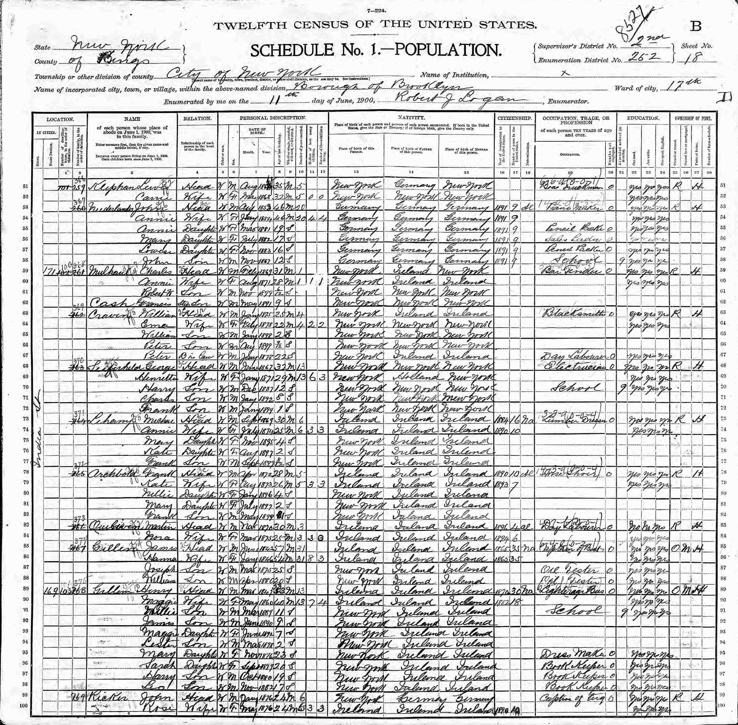 June 11, 1900 - 171 India Street, Supervisor's District 2, Enumeration District 26-2, Brooklyn, Kings County, New York.
