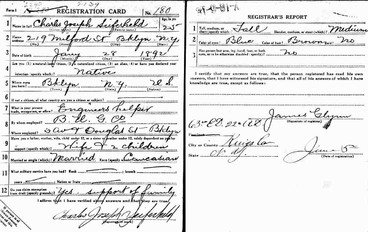 June 5, 1917 - 219 Milford Street, Brooklyn, Kings County, New York.