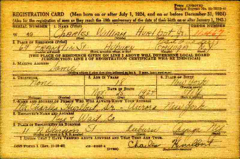 Notes for CHARLES WILLIAM HURLBUT, JR.: