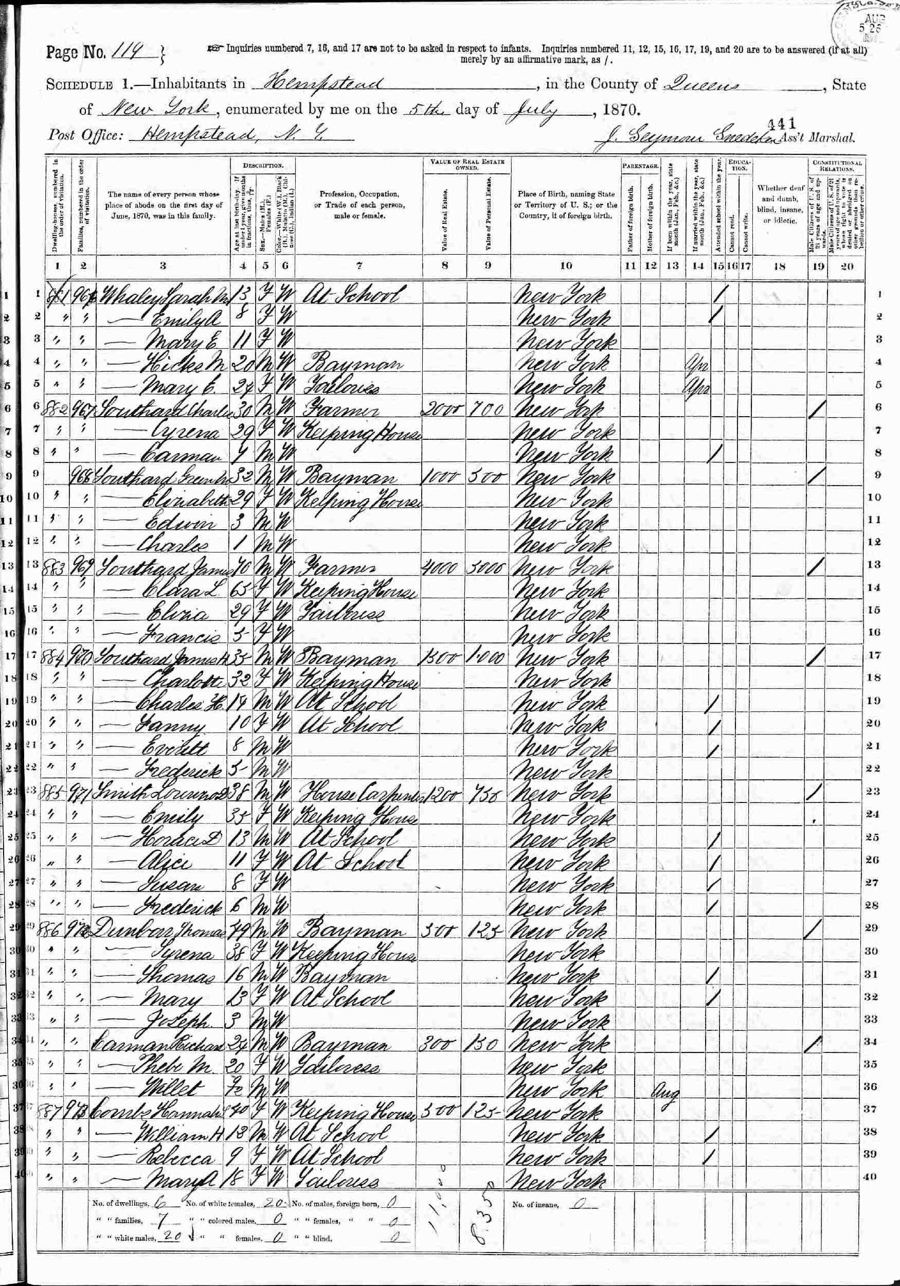 June 16, 1900 - Supervisor's District 2, Enumeration District 719, Oyster Bay, Nassau County, New York.